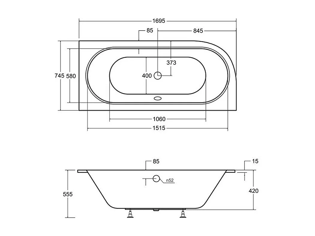 Badewanne Eckwanne AVITA SLIM 170x75 Rechts mit Styroporverkleidung | Ablauf & Füße GRATIS !