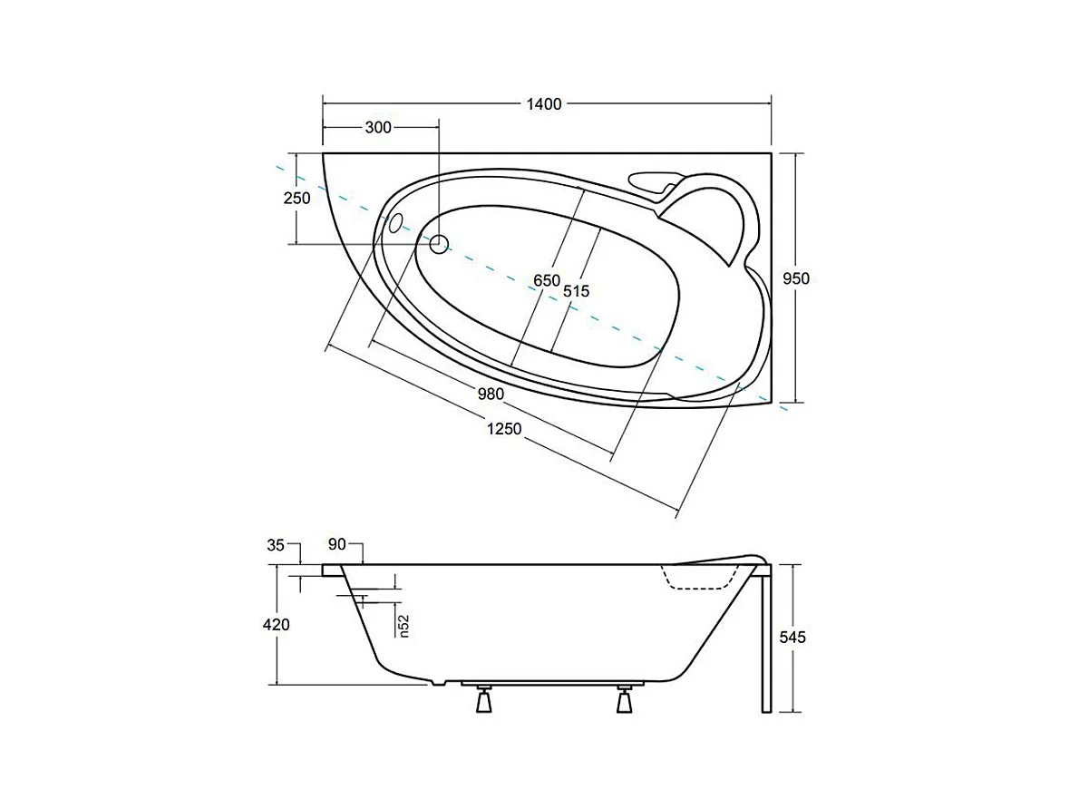 Badewanne Eckwanne FINEZJA 140x95 Rechts | Ablauf & Füße GRATIS !