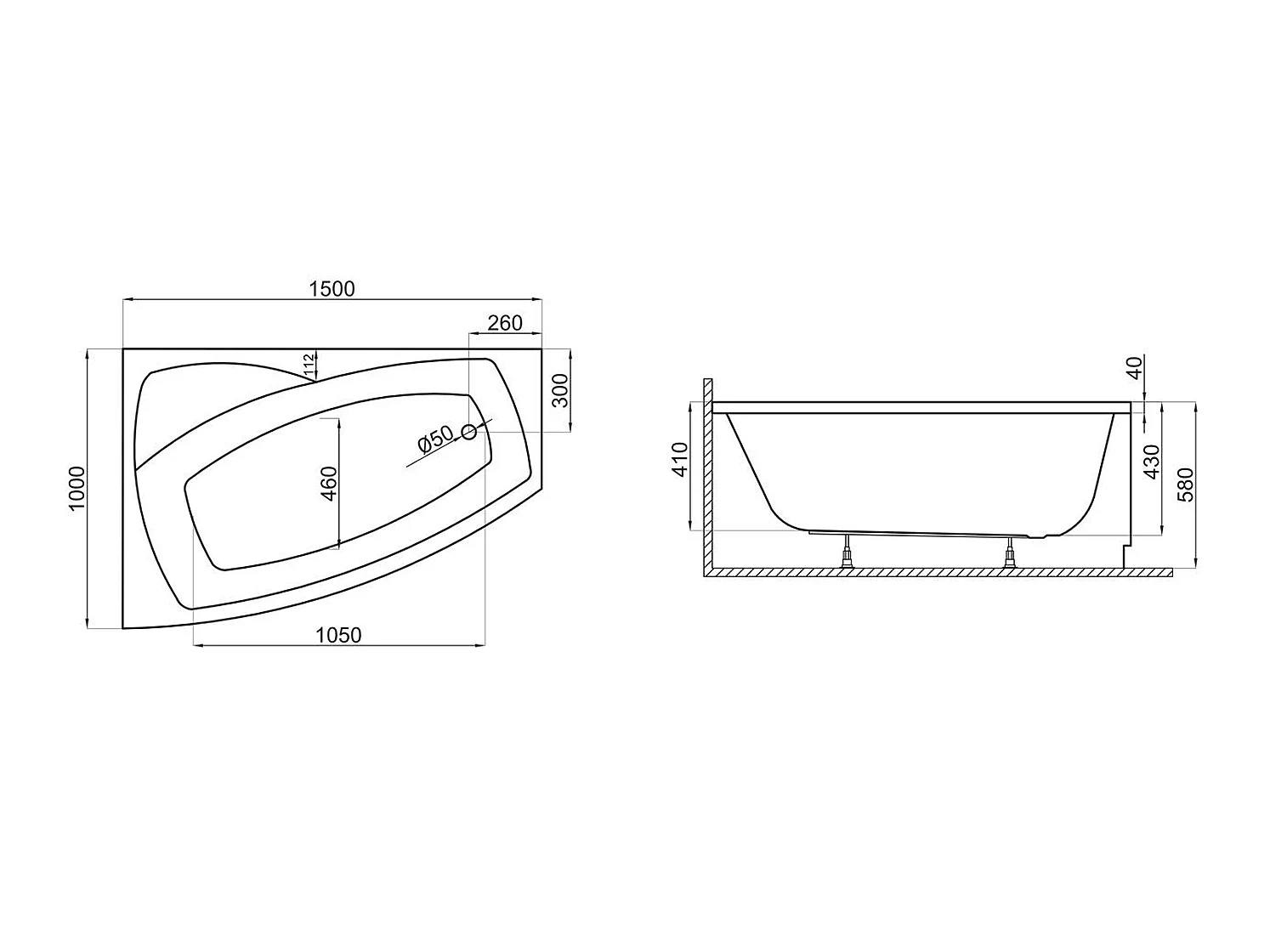 Badewanne Eckwanne FRIDA 150x100 Links mit AcrylSchürze | Ablauf & Füße GRATIS !