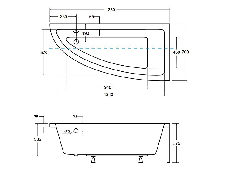 Badewanne Eckwanne PRAKTIKA 140x70 Rechts mit AcrylSchürze | Ablauf & Füße GRATIS !
