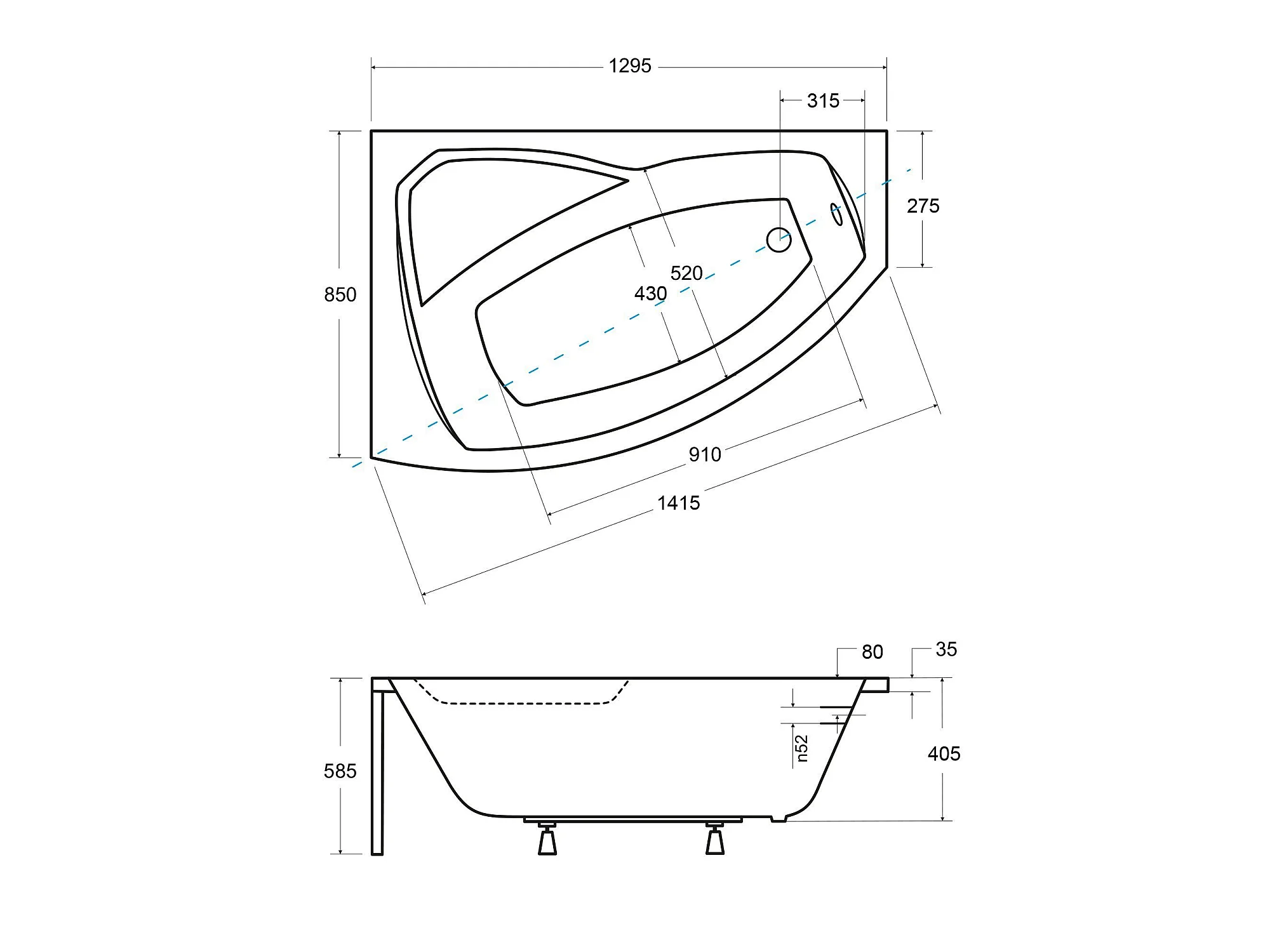Badewanne Eckwanne RIMA 130x85 Links mit Styroporverkleidung und weißer Kopfstützen | Ablauf & Füße GRATIS !