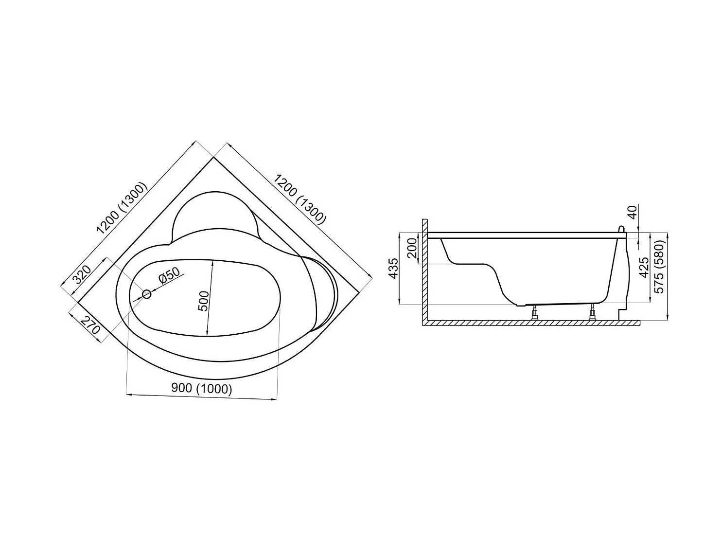 Badewanne Eckwanne STANDARD 120x120 mit AcrylSchürze | Ablauf & Füße GRATIS !