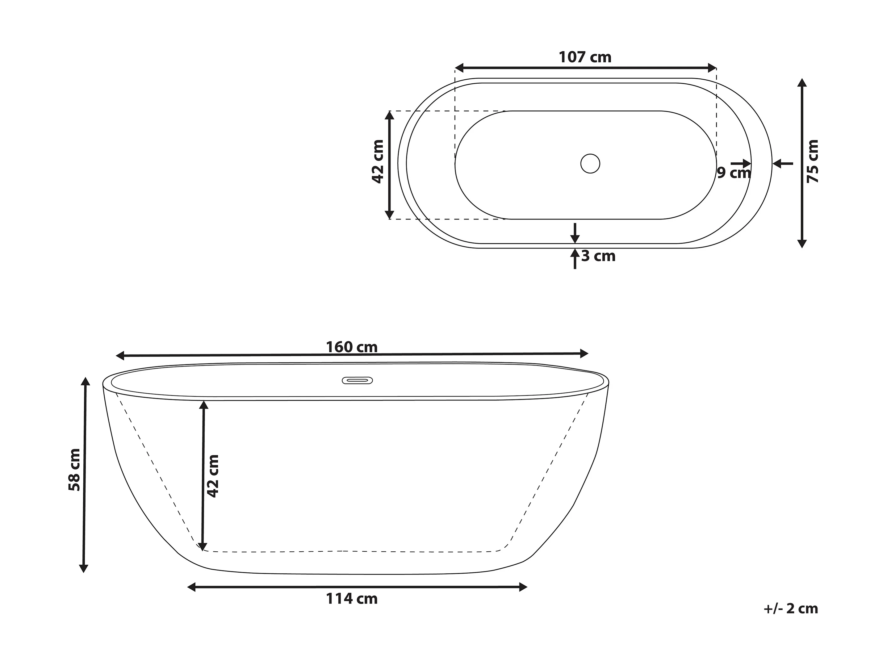 Moderne, freistehende Badewanne Sanitäracryl oval schwarz 160 x 75 cm Nevis
