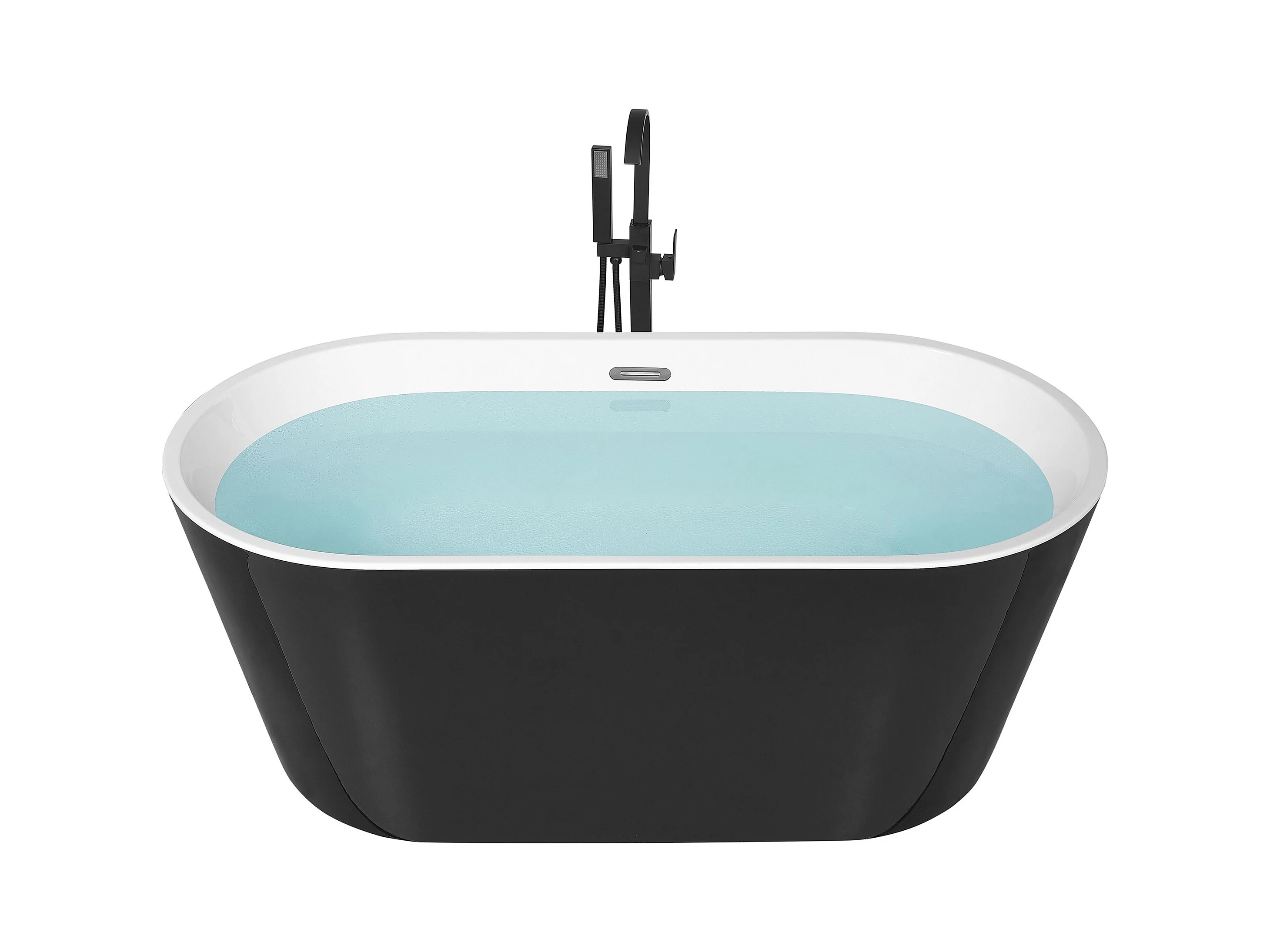 Acryl Badewanne oval freistehend schwarz-weiß mit Überlauf 170 x 72 cm Havana