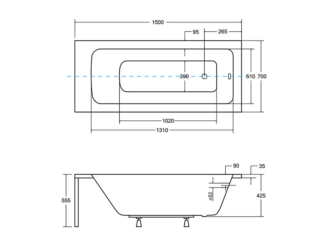 Badewanne Rechteck TALIA 150x70 | Ablauf & Füße GRATIS !