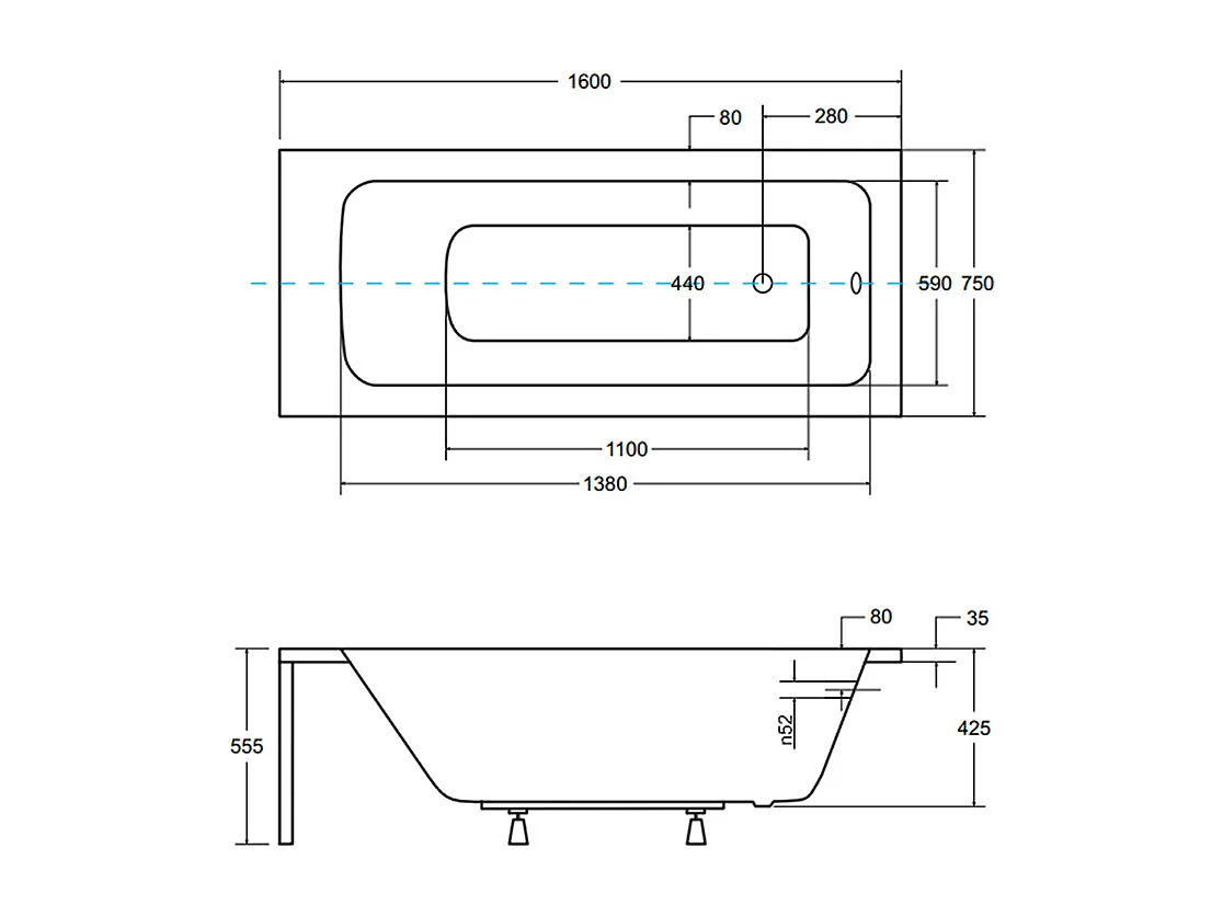 Badewanne Rechteck TALIA 160x75 mit AcrylSchürze | Ablauf & Füße GRATIS !