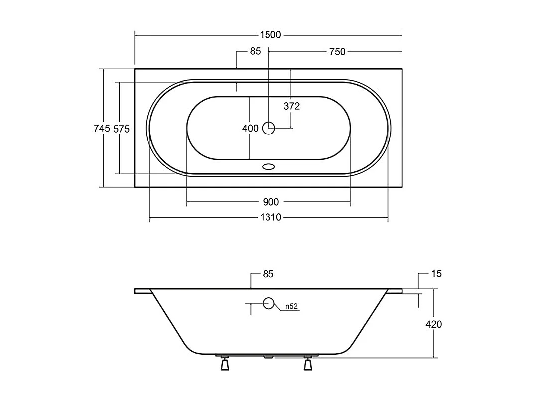 Badewanne Rechteck VITAE SLIM 150x75 mit Styroporverkleidung Ablage 4cm | Ablauf & Füße GRATIS !