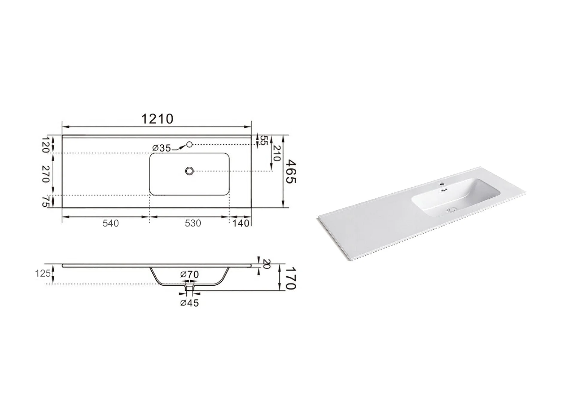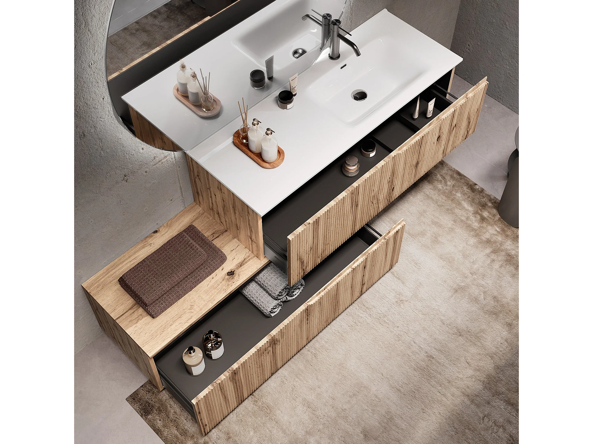 Badewannen-Komposition rechts 4-teilig VENERE eiche