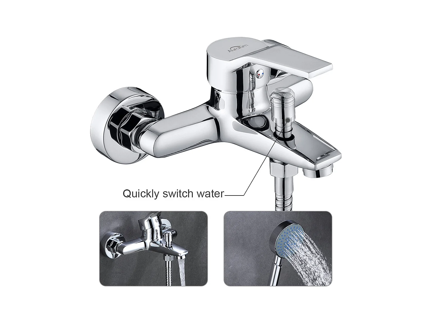 Badewannenarmatur Mischbatterie mit Handbrause Badewanne Dusche Wandmontage Badewannenmischbatterie Einhebel Chrom Badezimmer