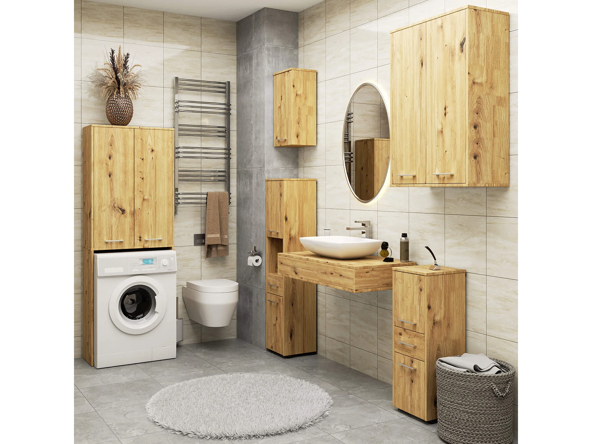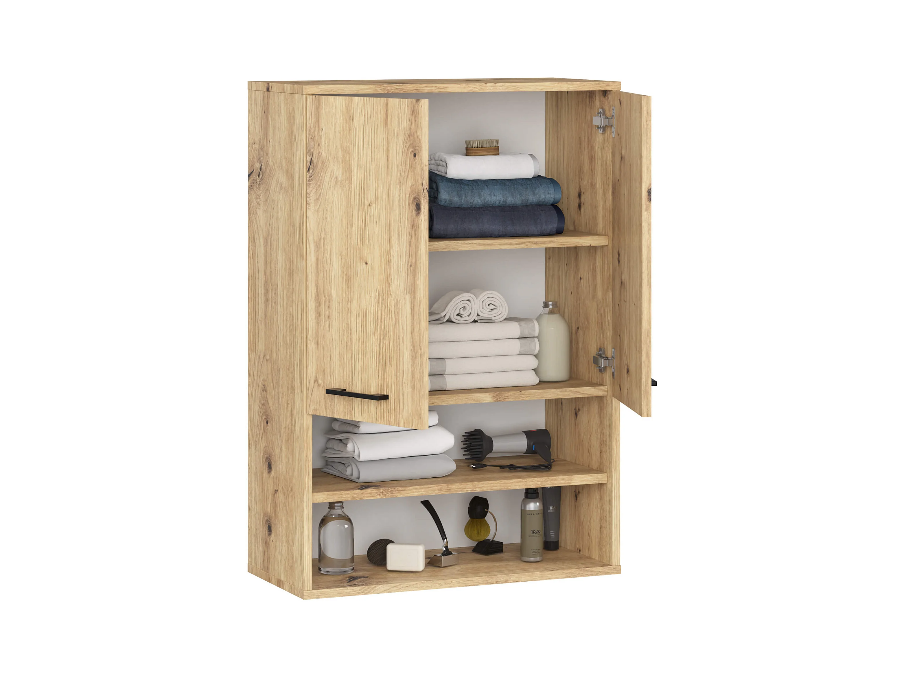 Badezimmer-Hängeschrank FIN Artisan Eiche 64 cm 2 Türen 4 Regalböden B64xH94xT30 cm