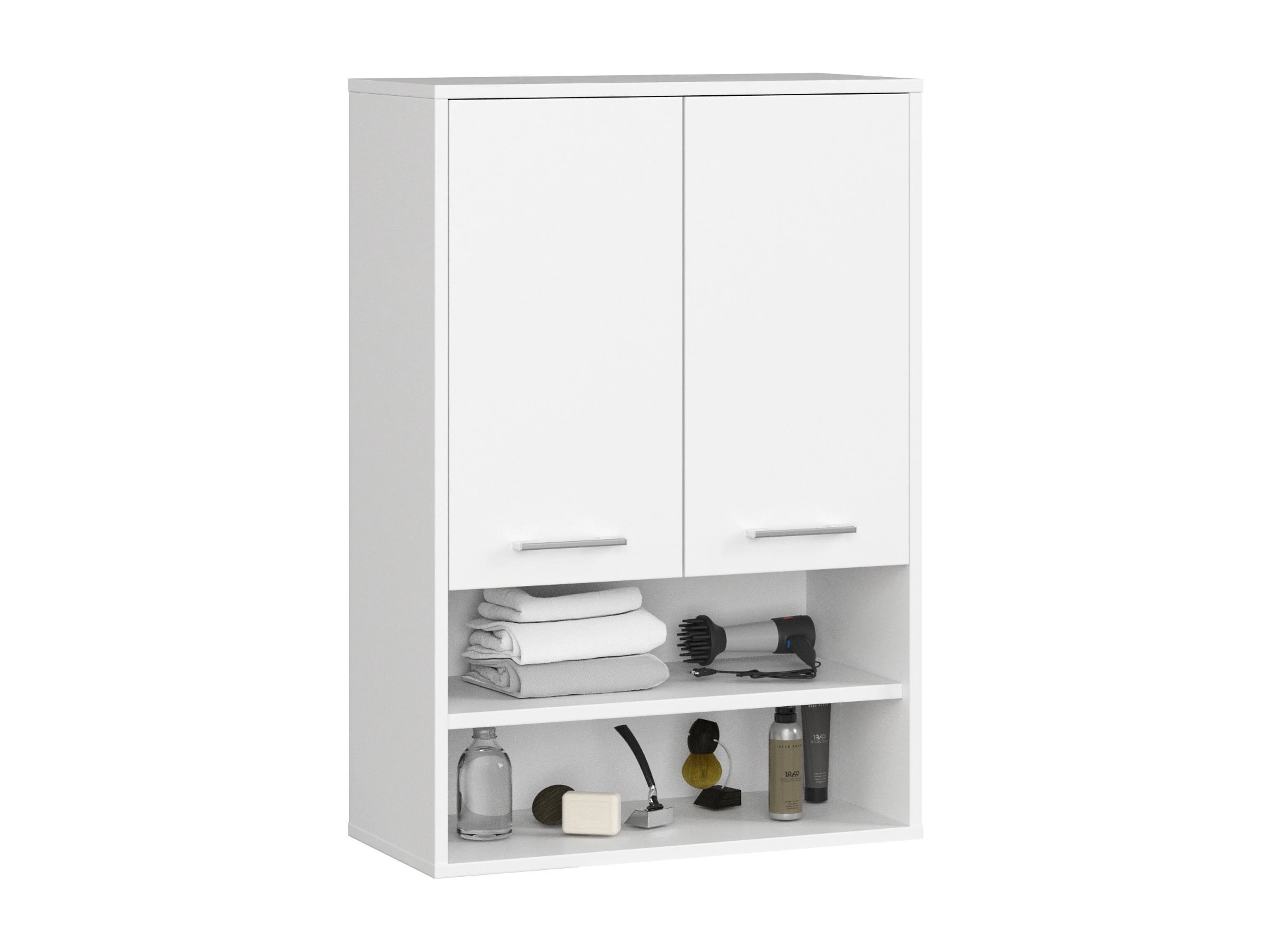 Badezimmer-Hängeschrank FIN Weiß 64 cm 2 Türen 4 Regalböden B64xH94xT30 cm