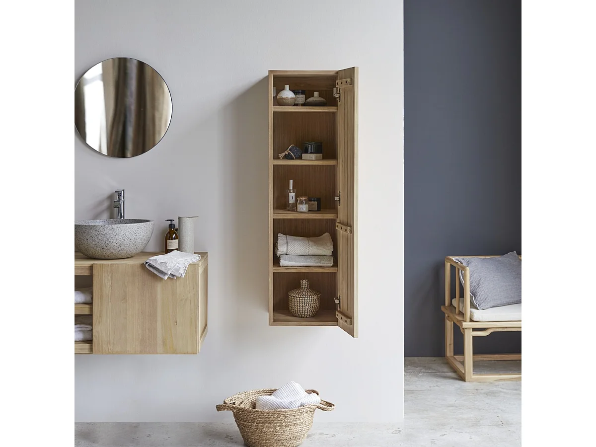 Badezimmer Hängeschrank Hochschrank aus massivem Teak Bad Naturholz Badschrank