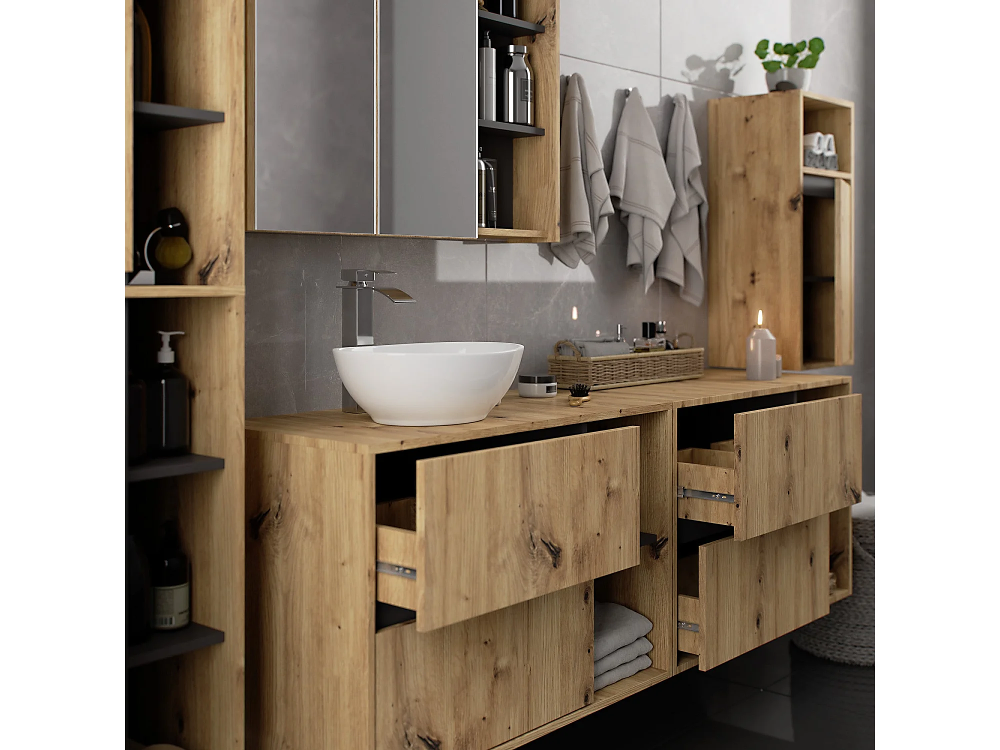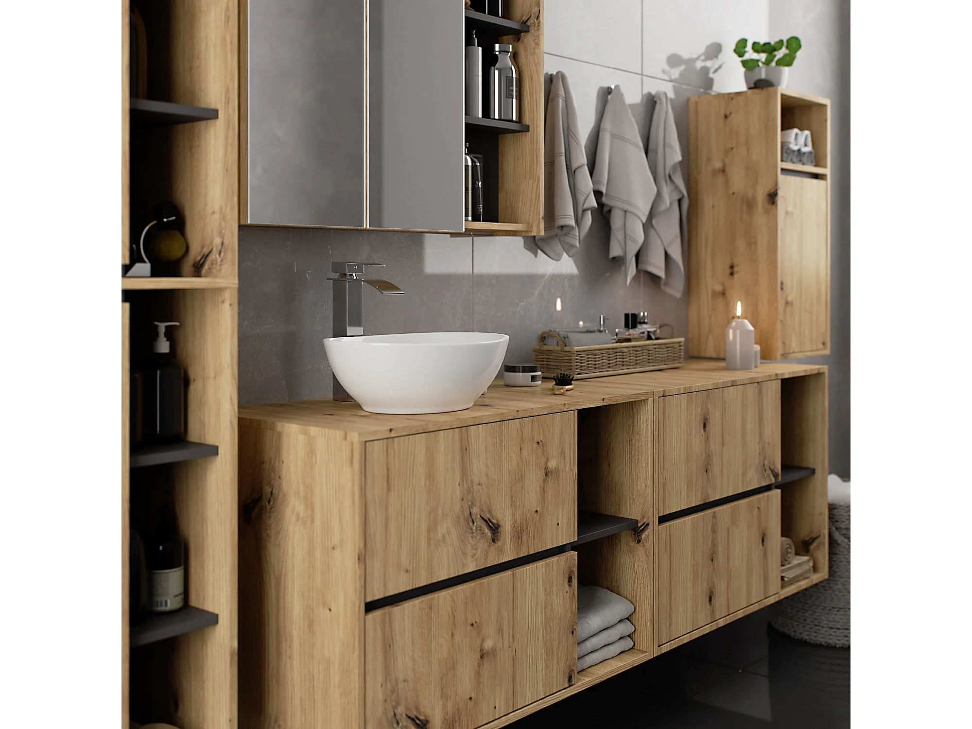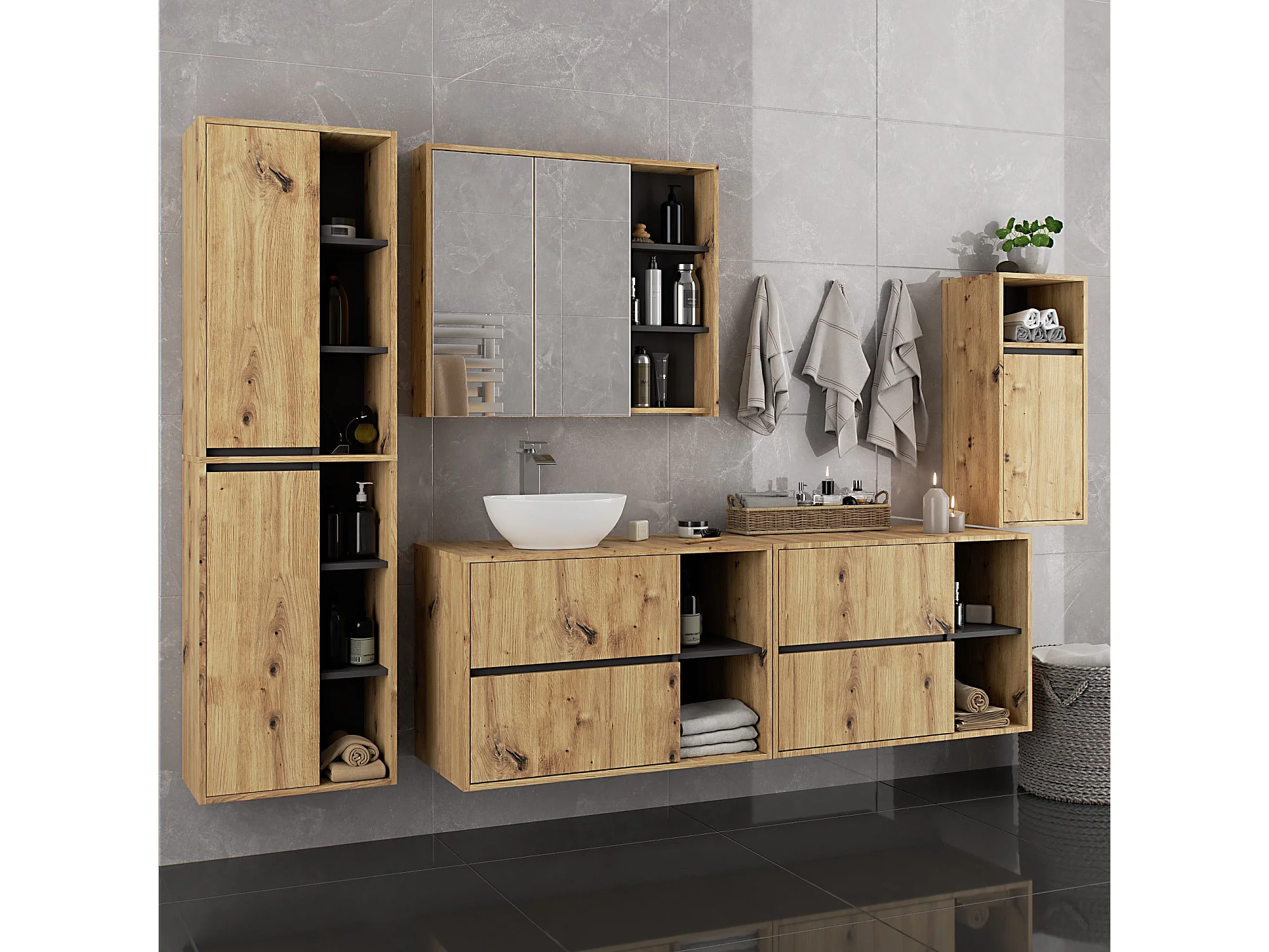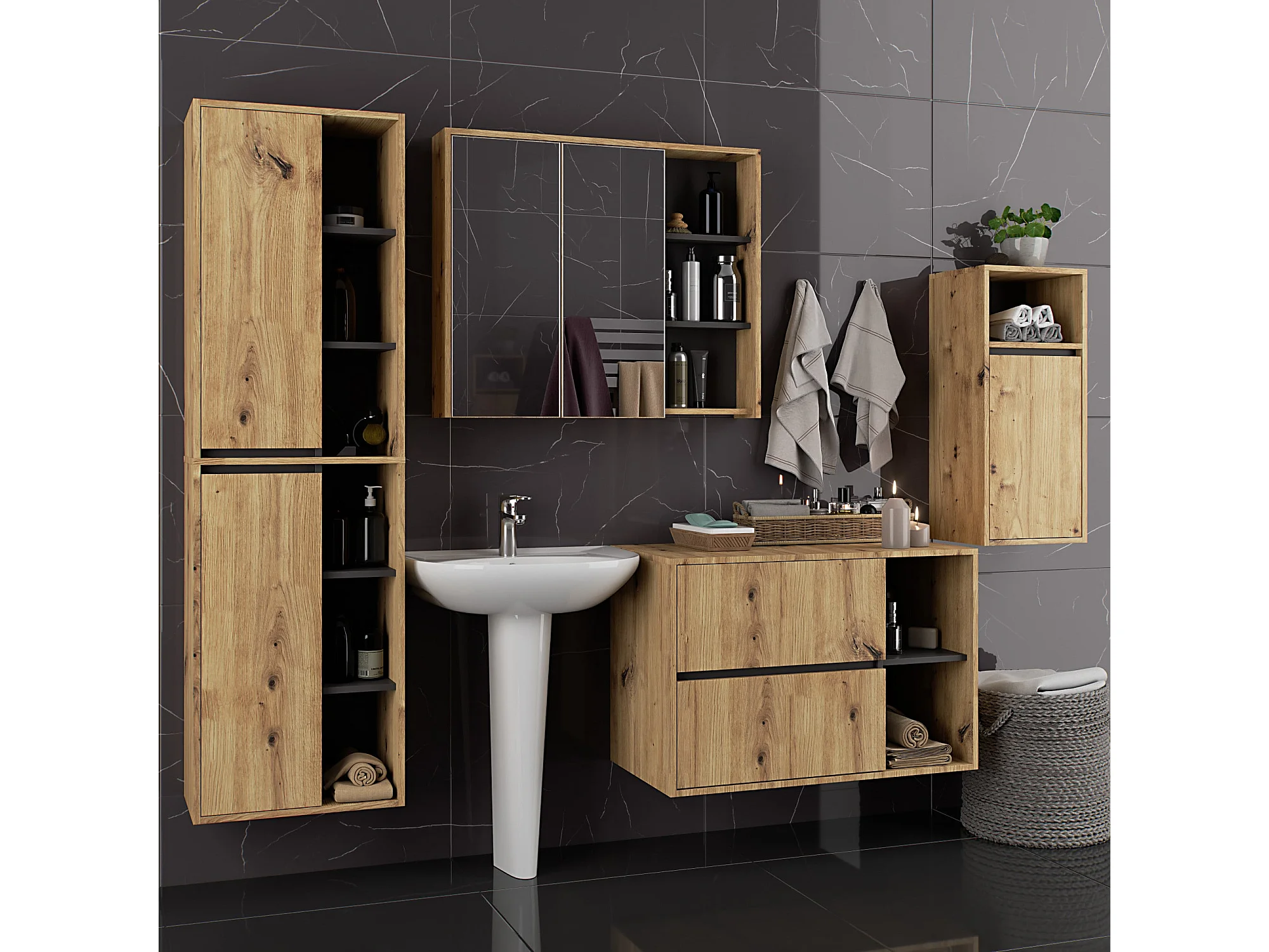Badezimmer-Hängeschrank VAMI Artisan Eiche, Graphitgrau 35 cm 1 Tür 3 Regalböden B35xH80xT30 cm