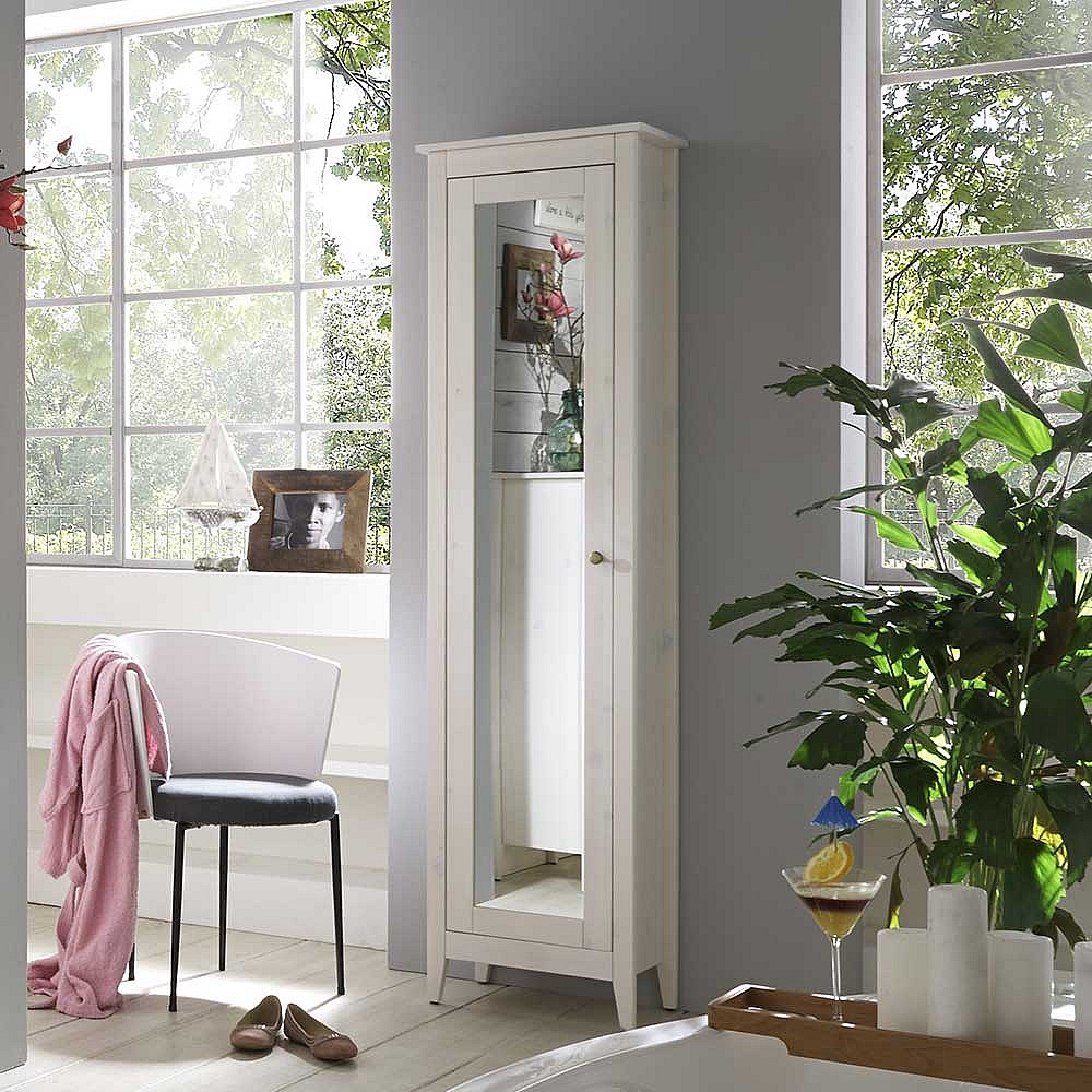 Badezimmer Hochschrank in Wei� lasiert Kiefer massiv Spiegelt�r