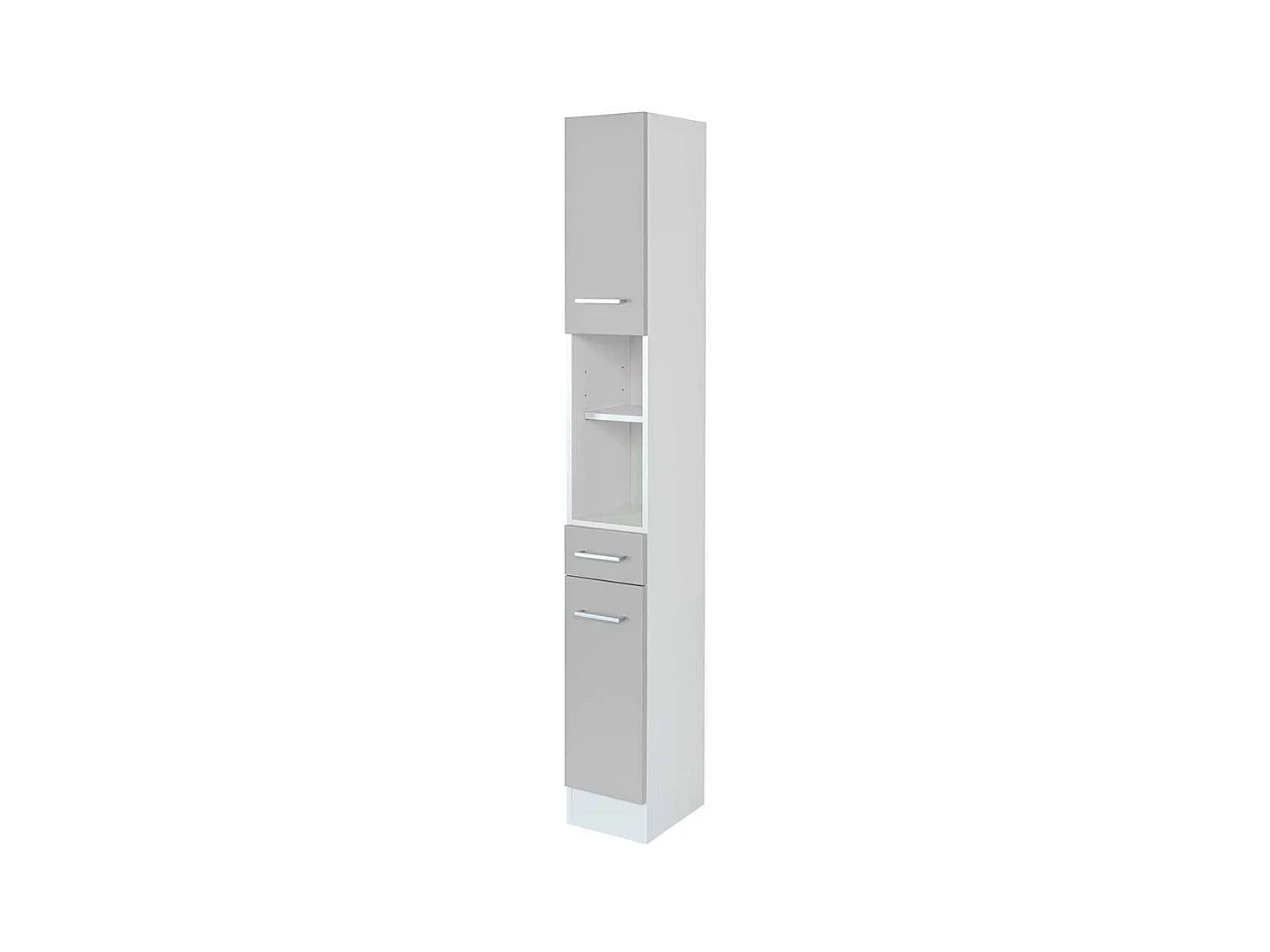 Badezimmer Seitenschrank in Hellgrau und Weiß 25 cm breit
