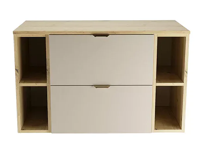 Badezimmer-Set 100 cm Schrank mit Arbeitsplatte und Regalen Eiche Artisan / Kaschmir Orio