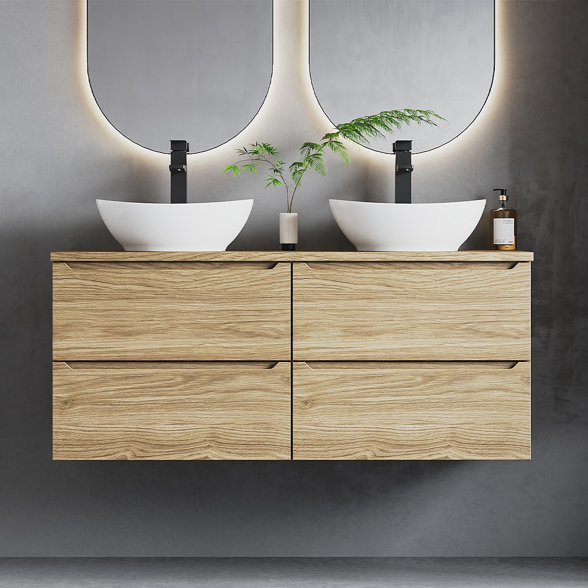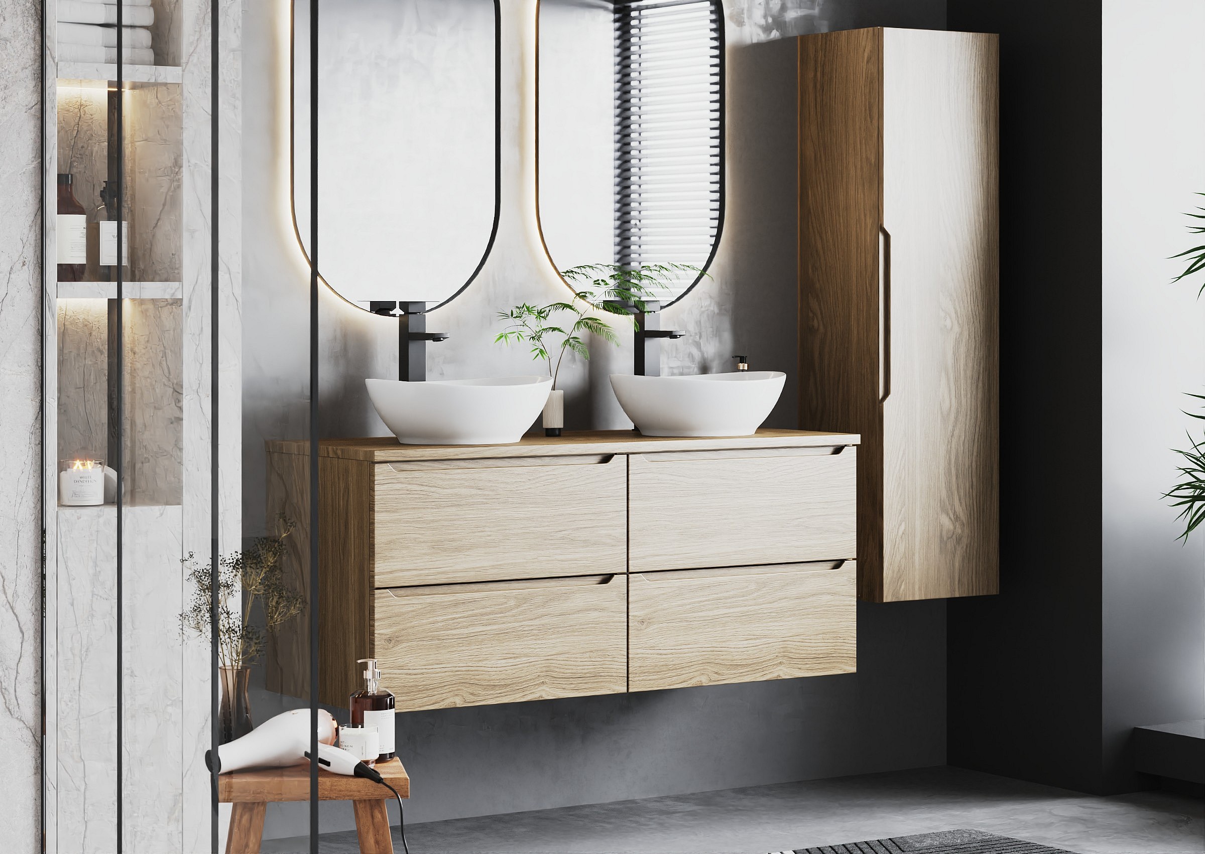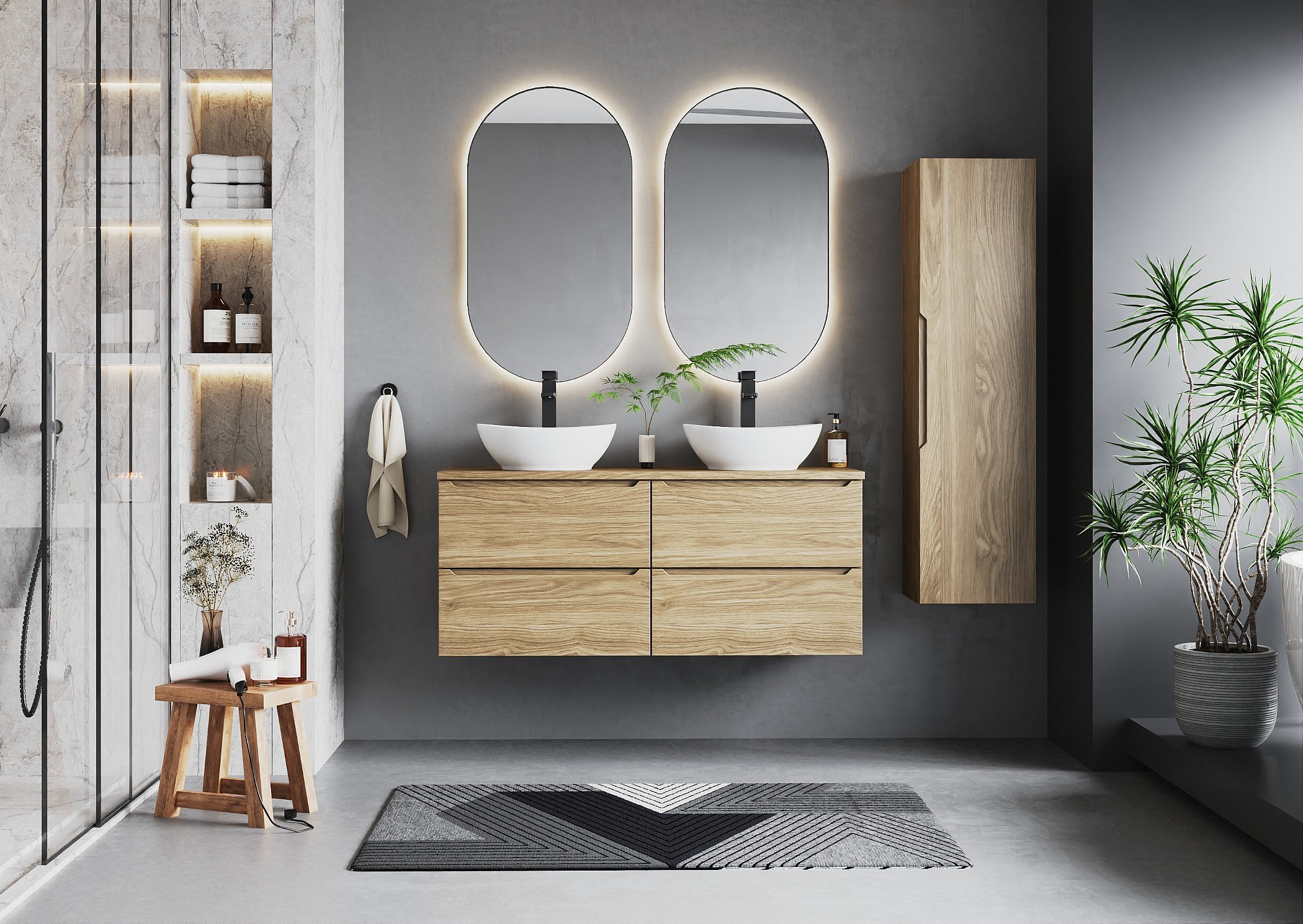 Badezimmer-Set 120 cm Schrank mit Arbeitsplatte und Waschbecken Eiche geölt Etna