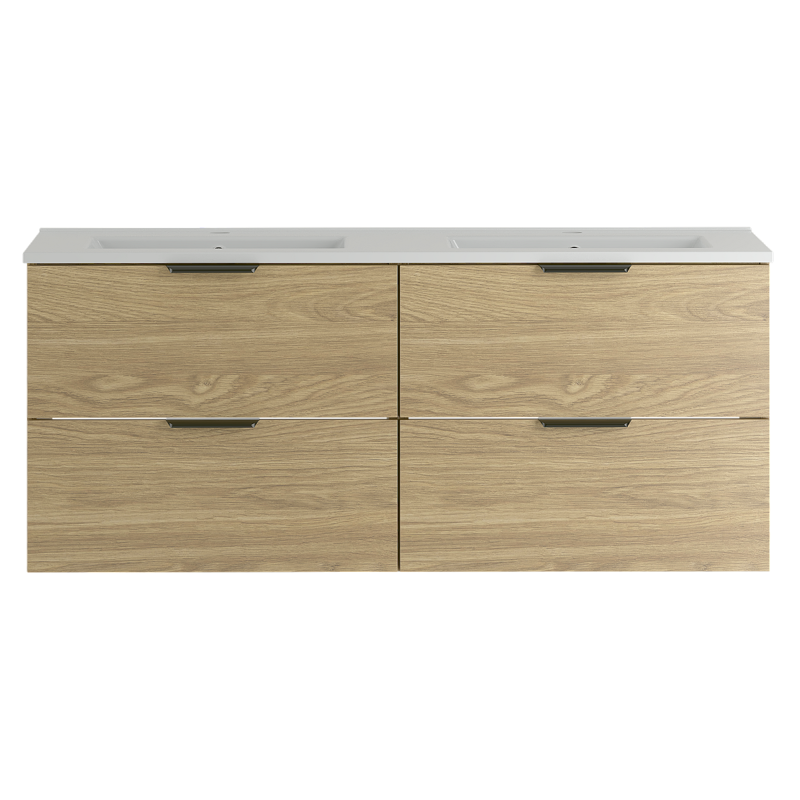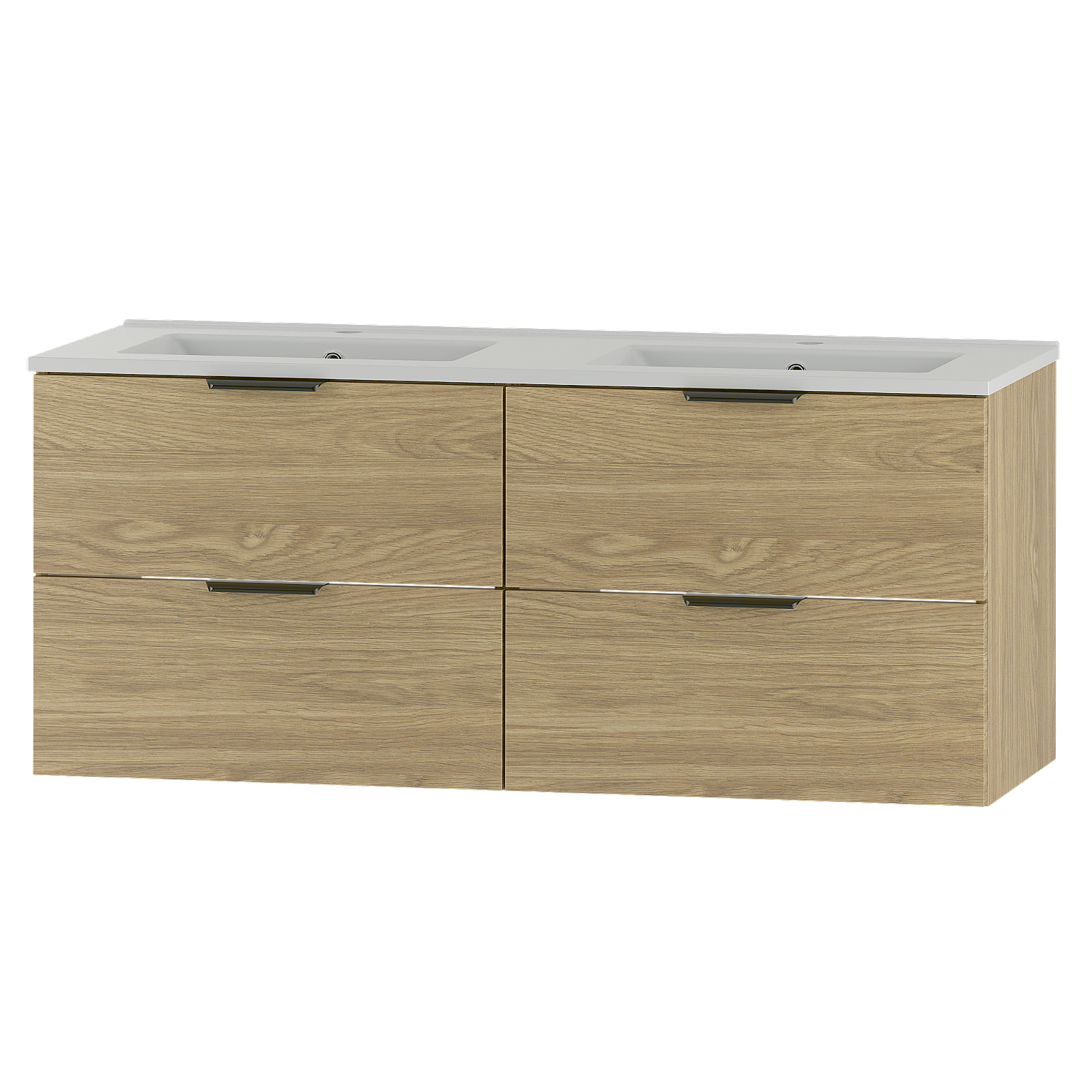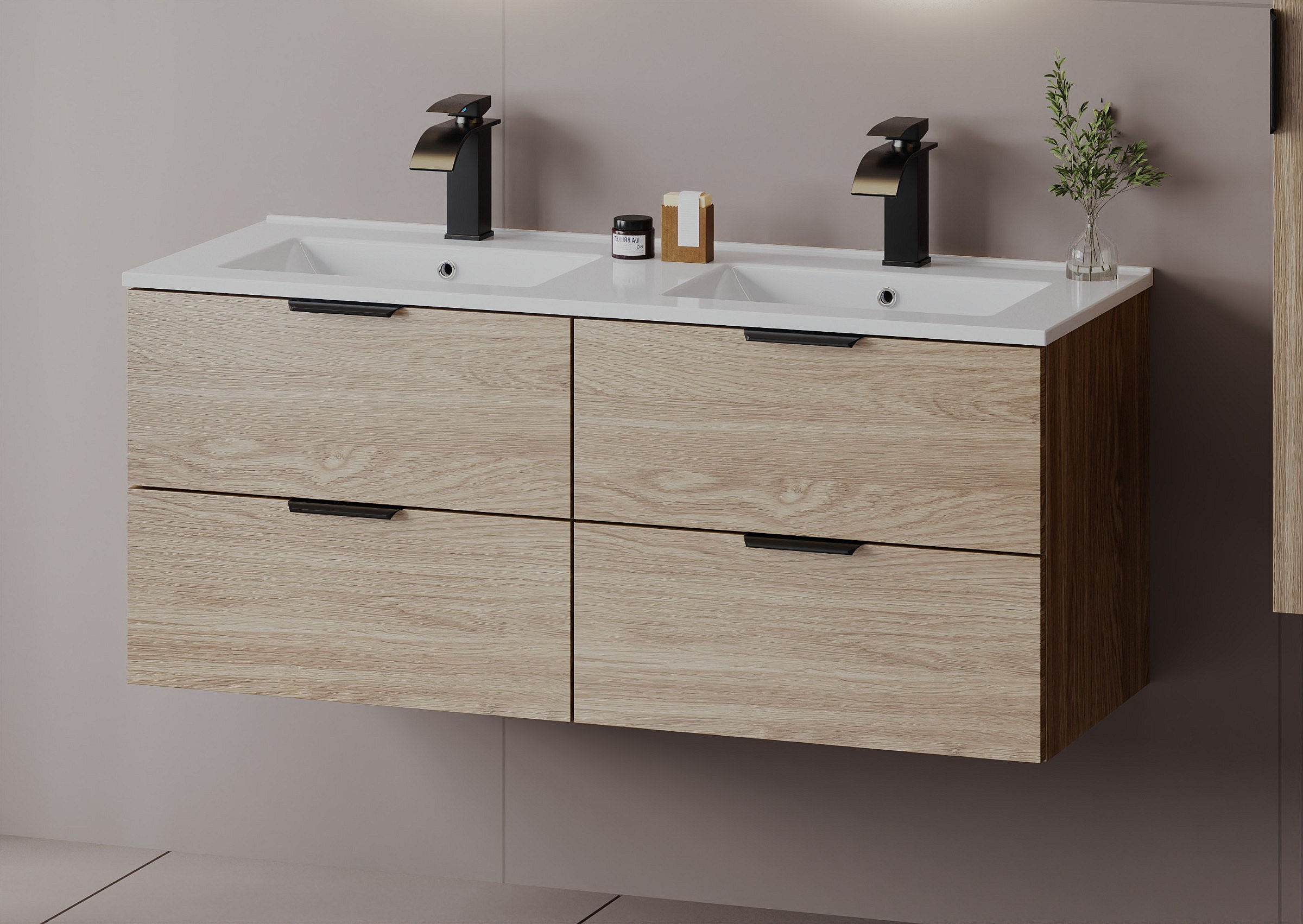 Badezimmer-Set 120 cm Schrank mit Waschbecken Eiche geölt Pile