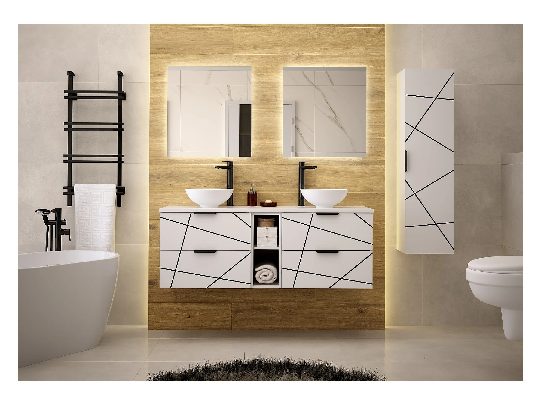 Badezimmer-Set 140 cm Schrank mit Arbeitsplatte und Regal Weiß Matt Wood