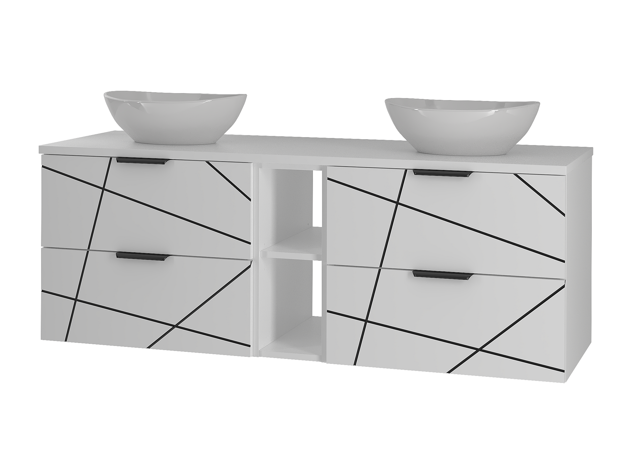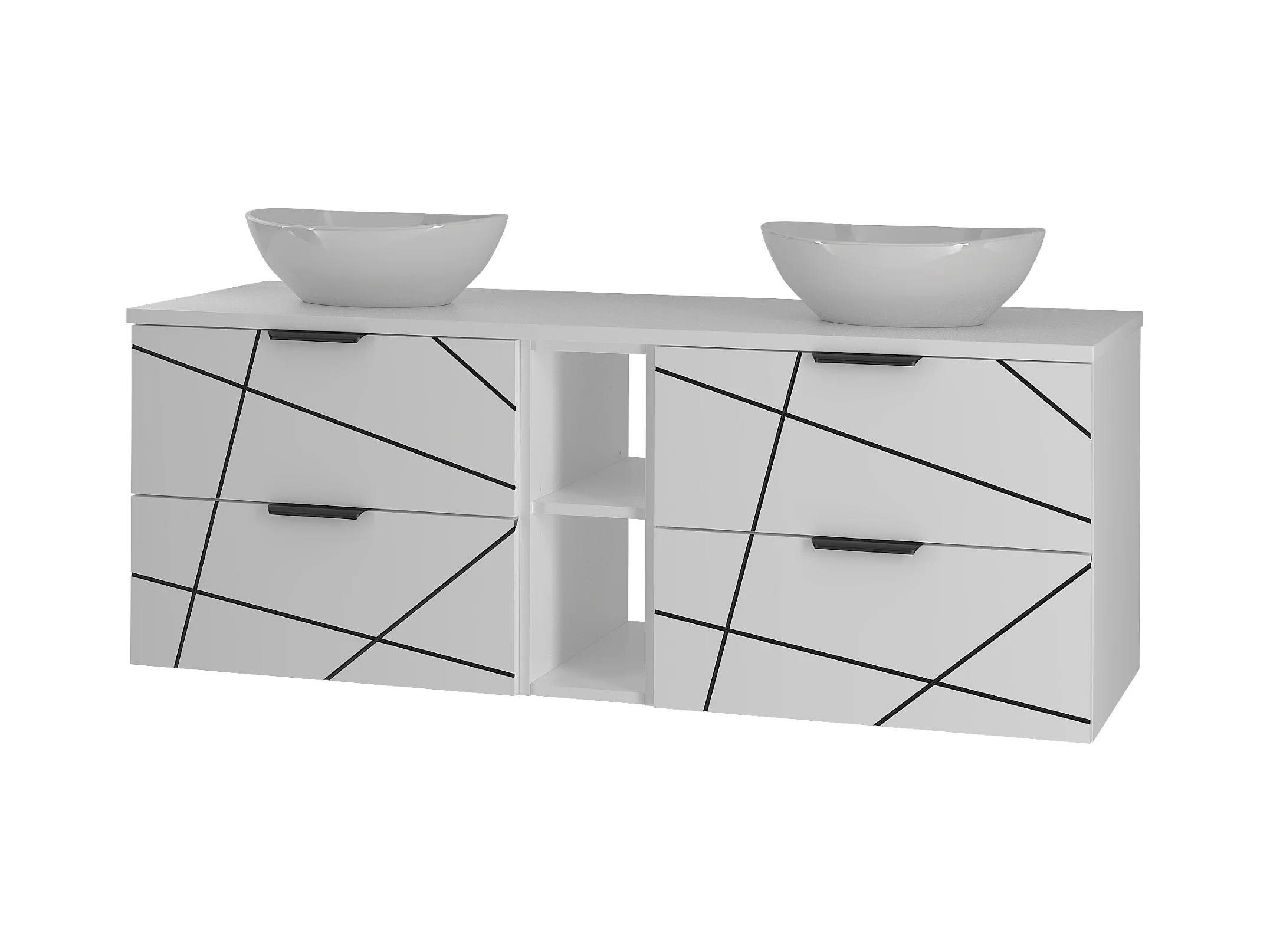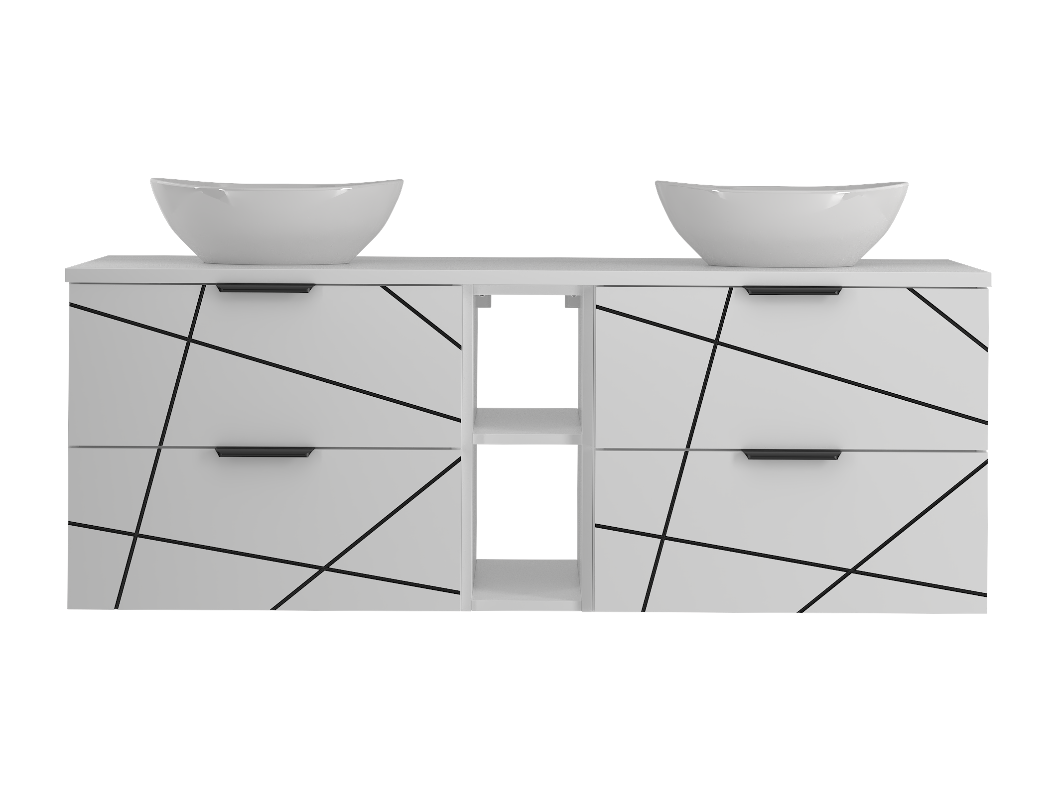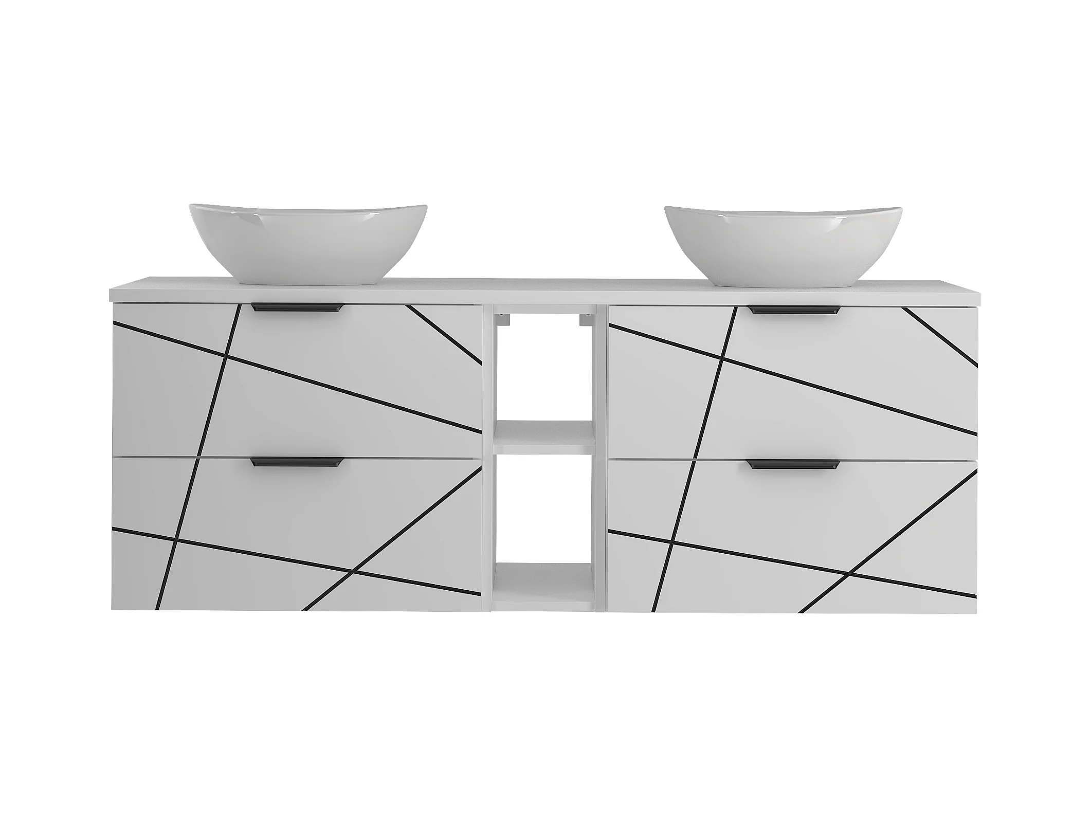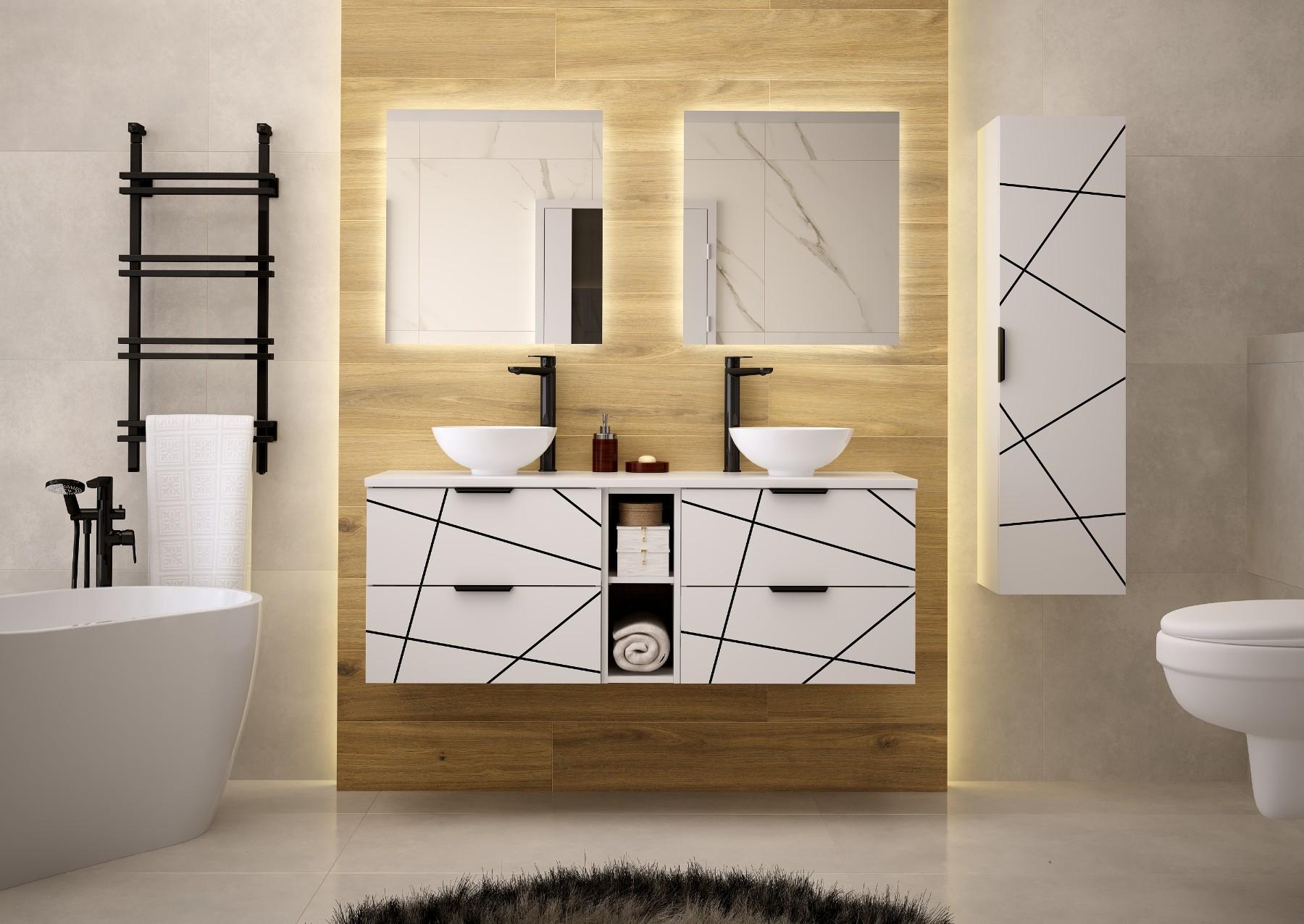 Badezimmer-Set 140 cm Schrank mit Waschtisch und Regal und Waschbecken Weiß Matt Wood