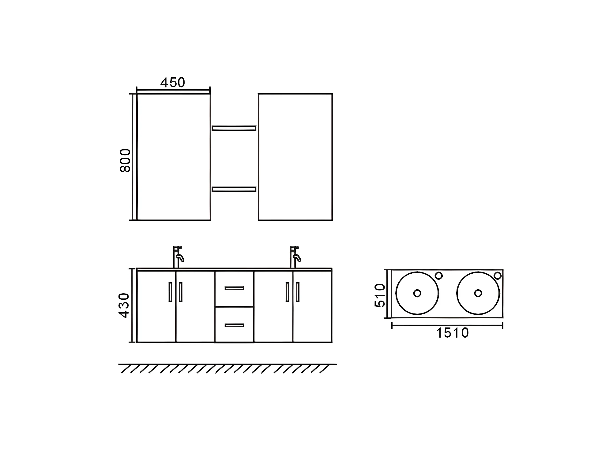 Badezimmer-Set 151 cm Schwarz Waschbecken inklusive - Ginger