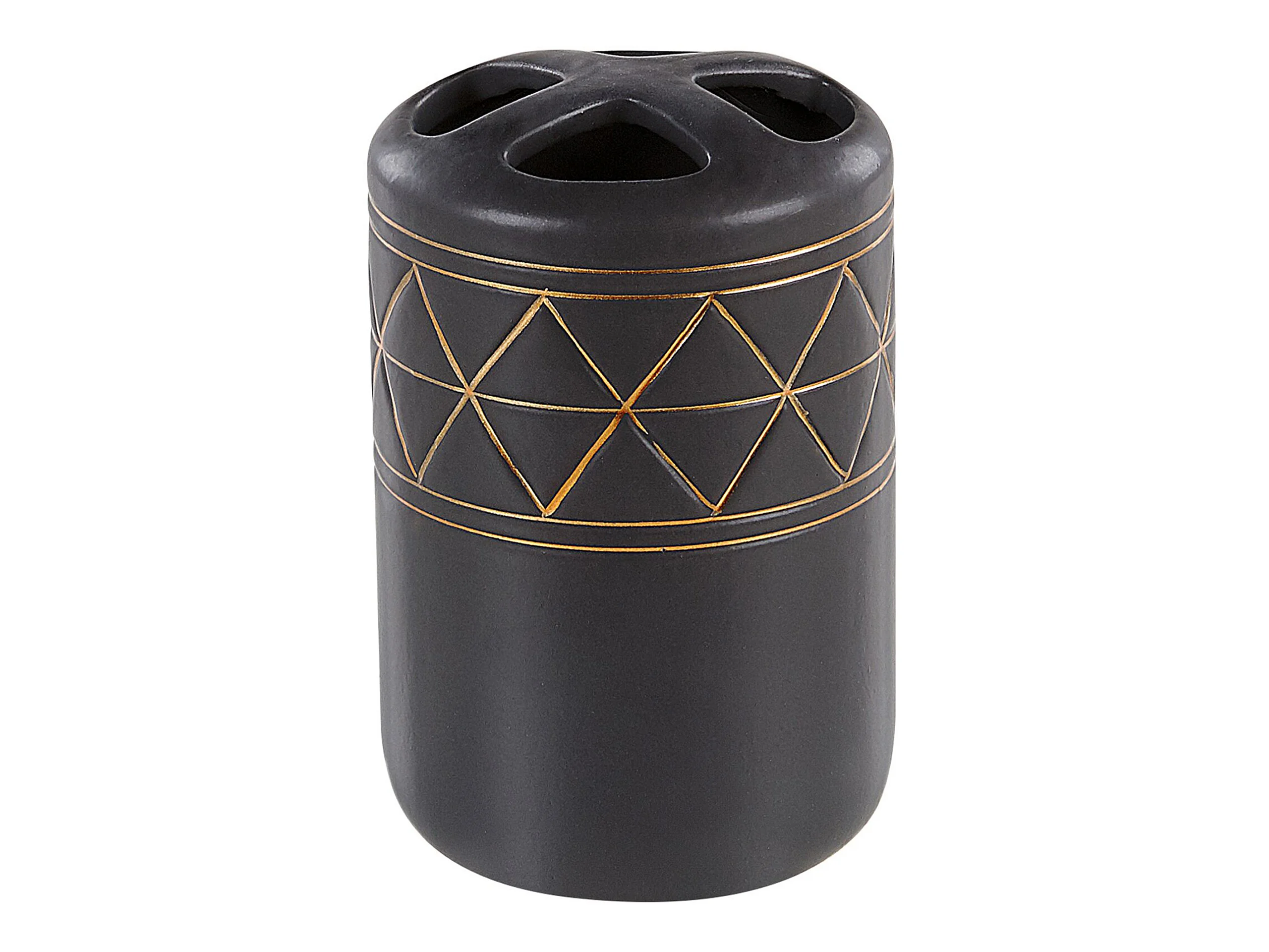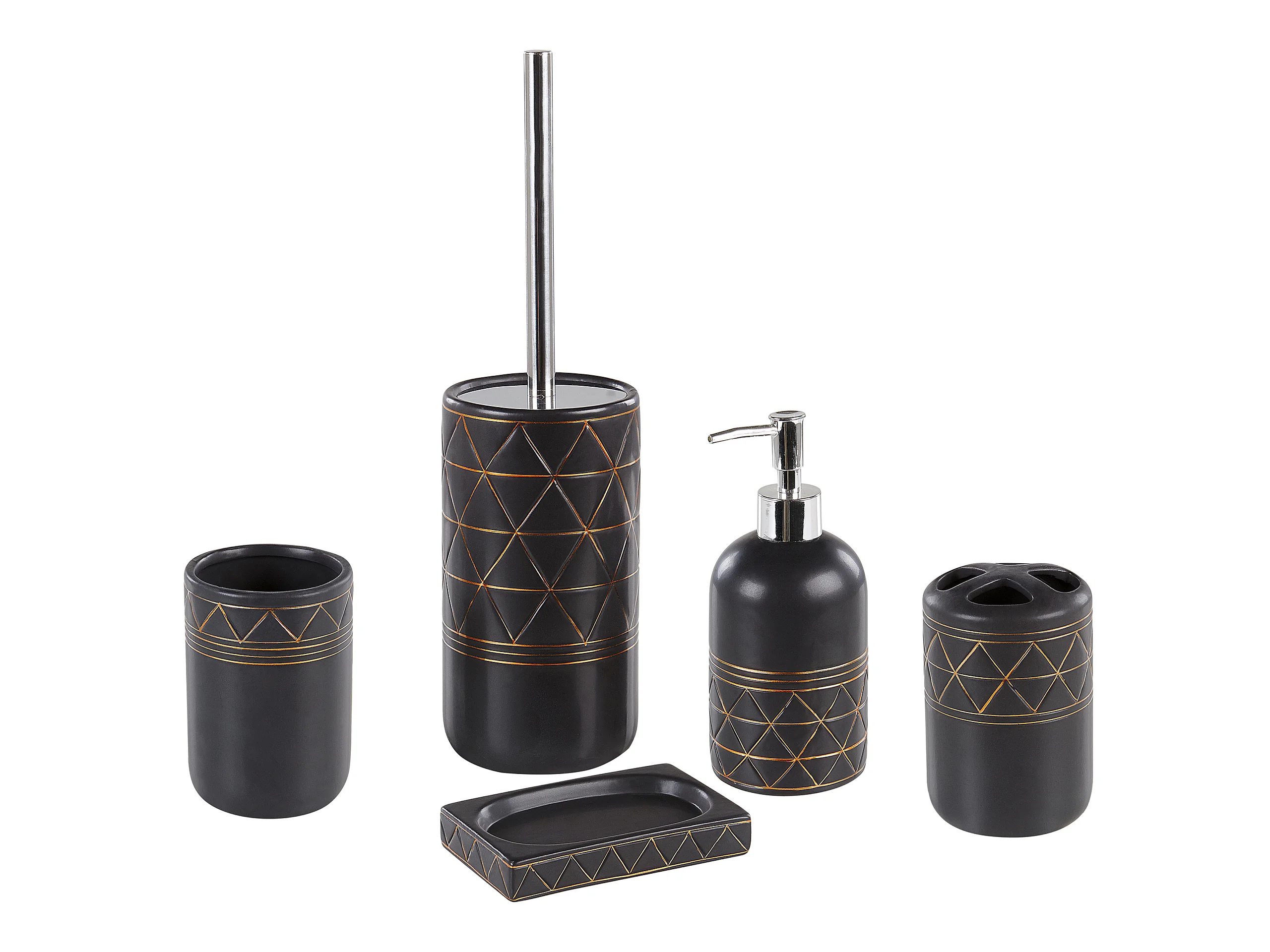 Elegantes Badezimmer-Zubehör 5-teilig aus Keramik in Schwarz/Gold Lanco