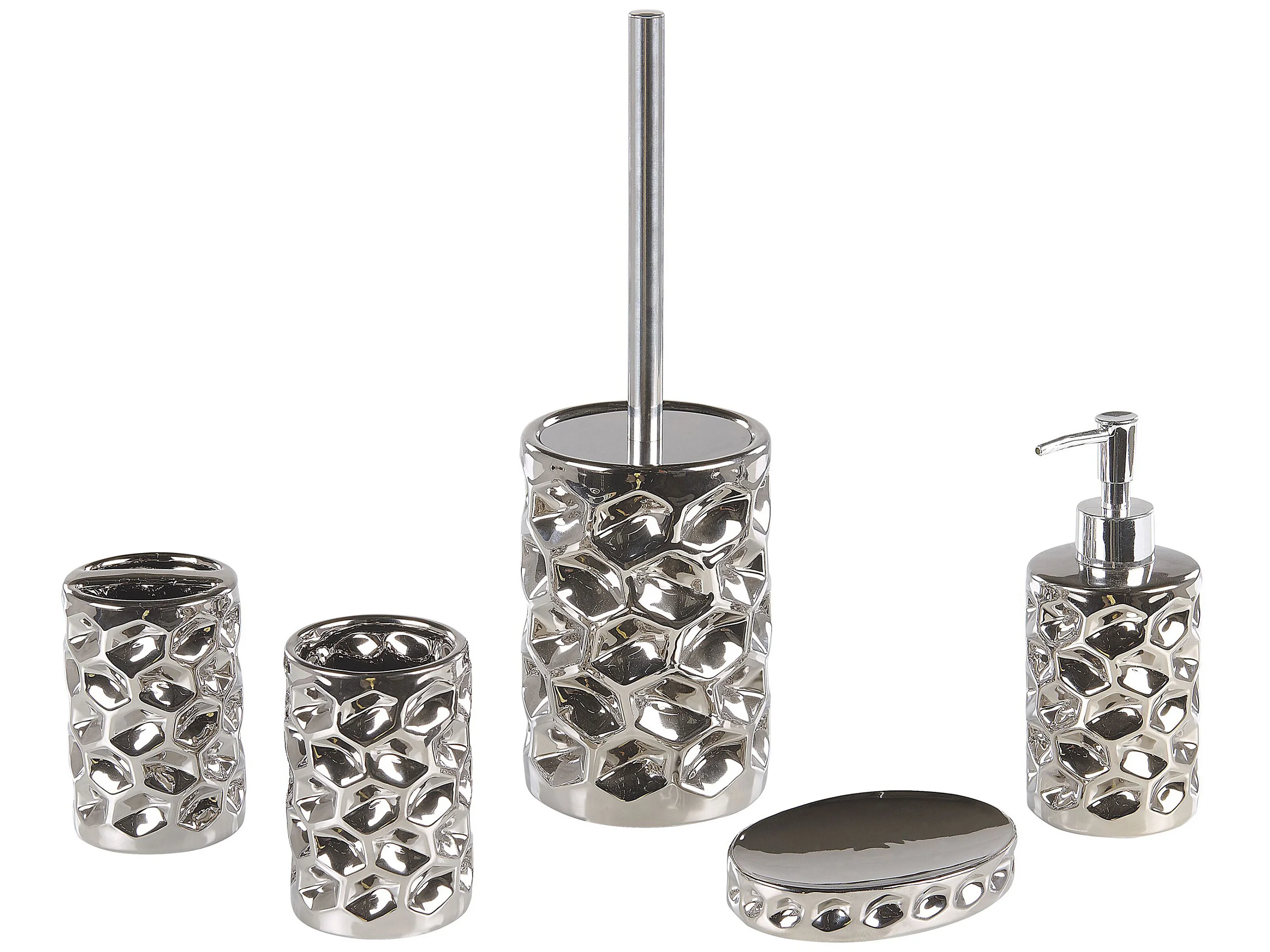 Elegantes Badezimmer-Zubehör 5-teilig aus Keramik in Silber Tirua