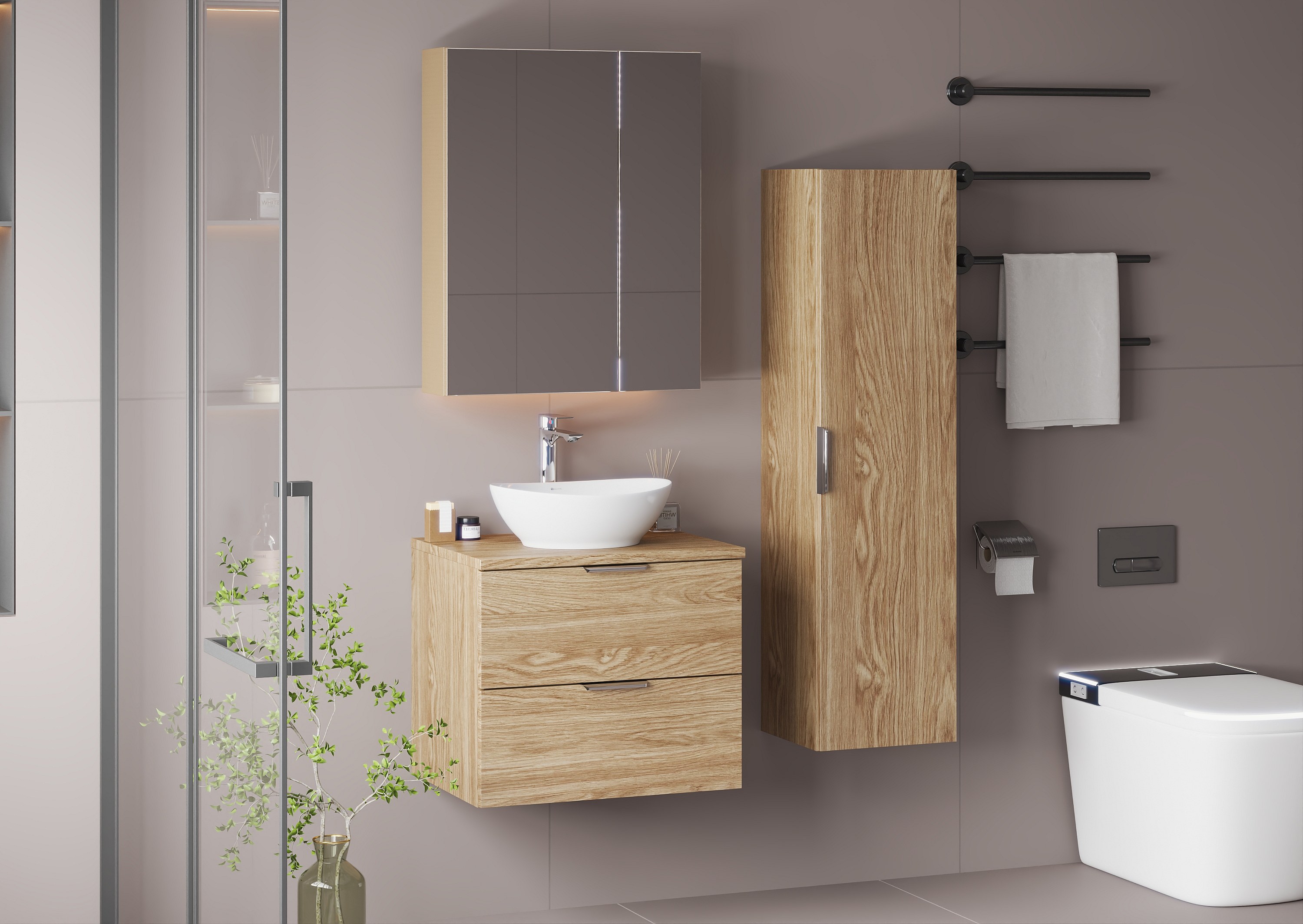 Badezimmer-Set 60 cm Schrank mit Arbeitsplatte Eiche geölt Pile