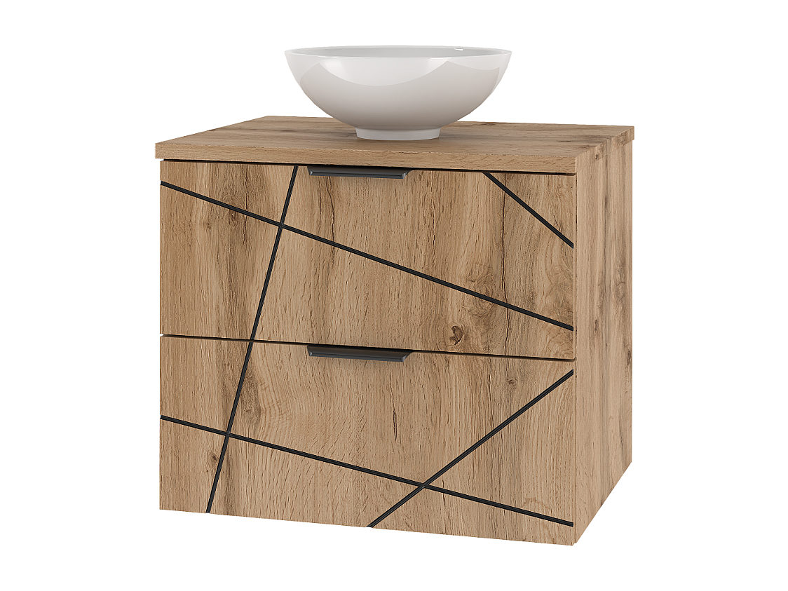 Badezimmer-Set 60 cm Schrank mit Arbeitsplatte und Waschbecken Eiche Wotan Wood