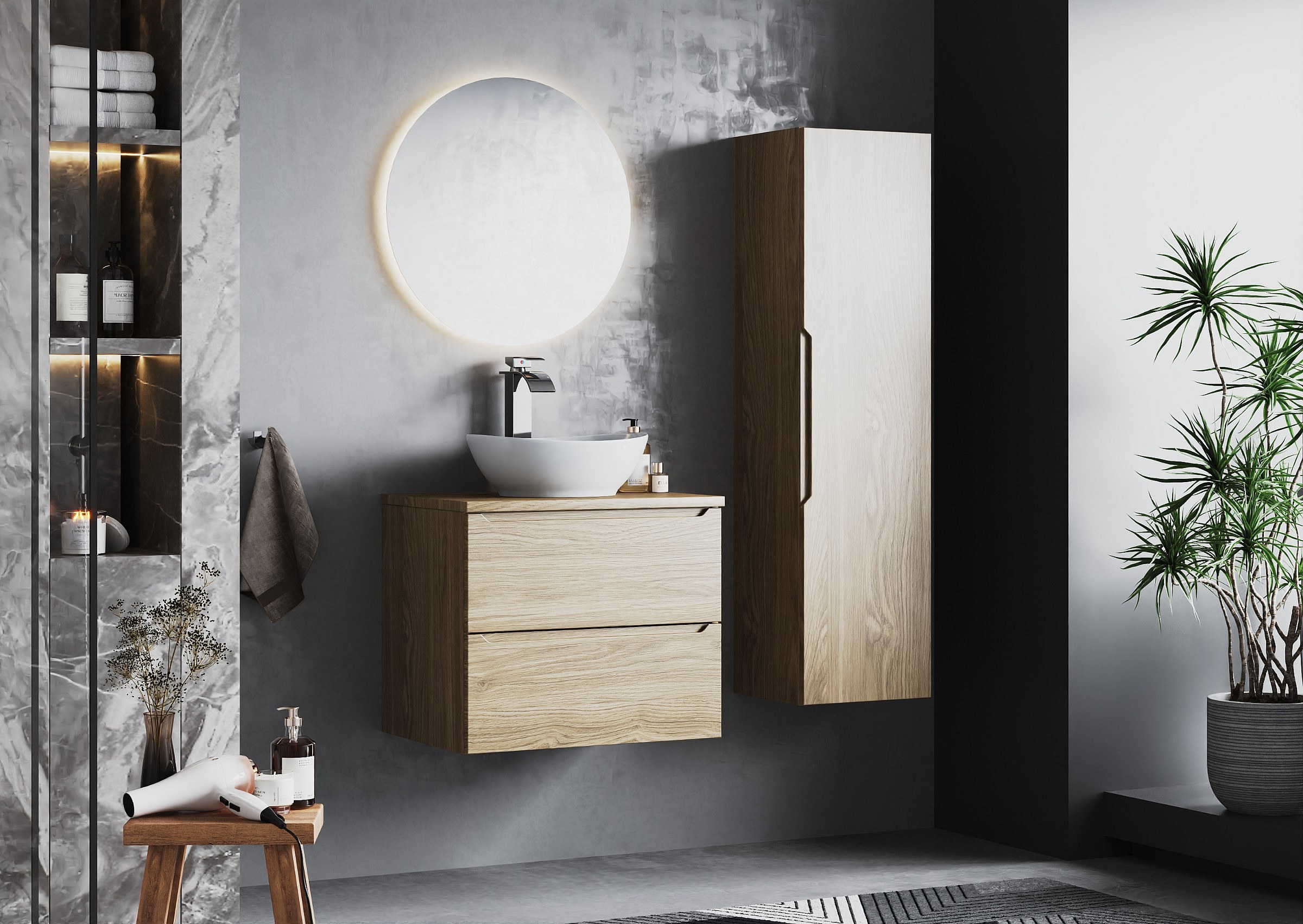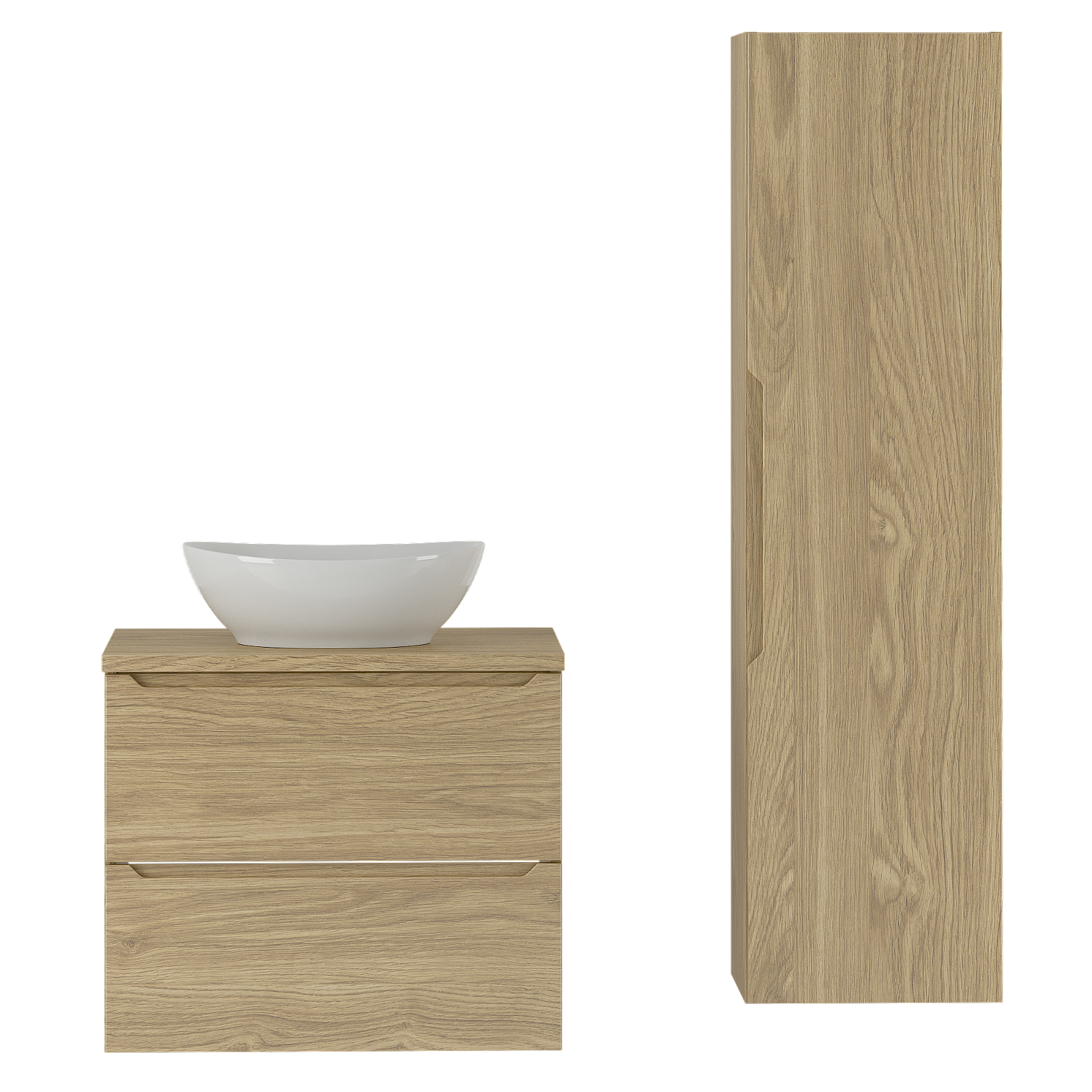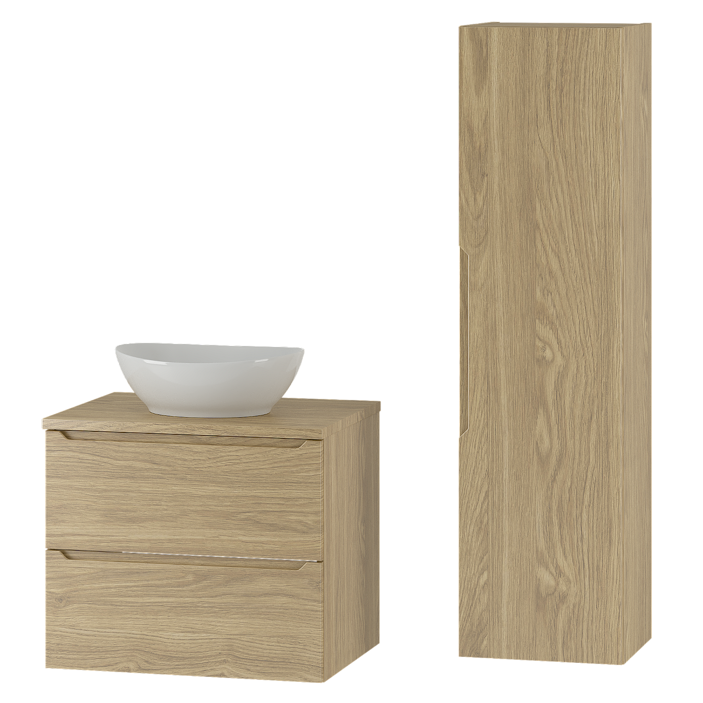 Badezimmer-Set 60 cm Schrank mit Arbeitsplatte und Waschbecken und Hochschrank Eiche geölt Etna
