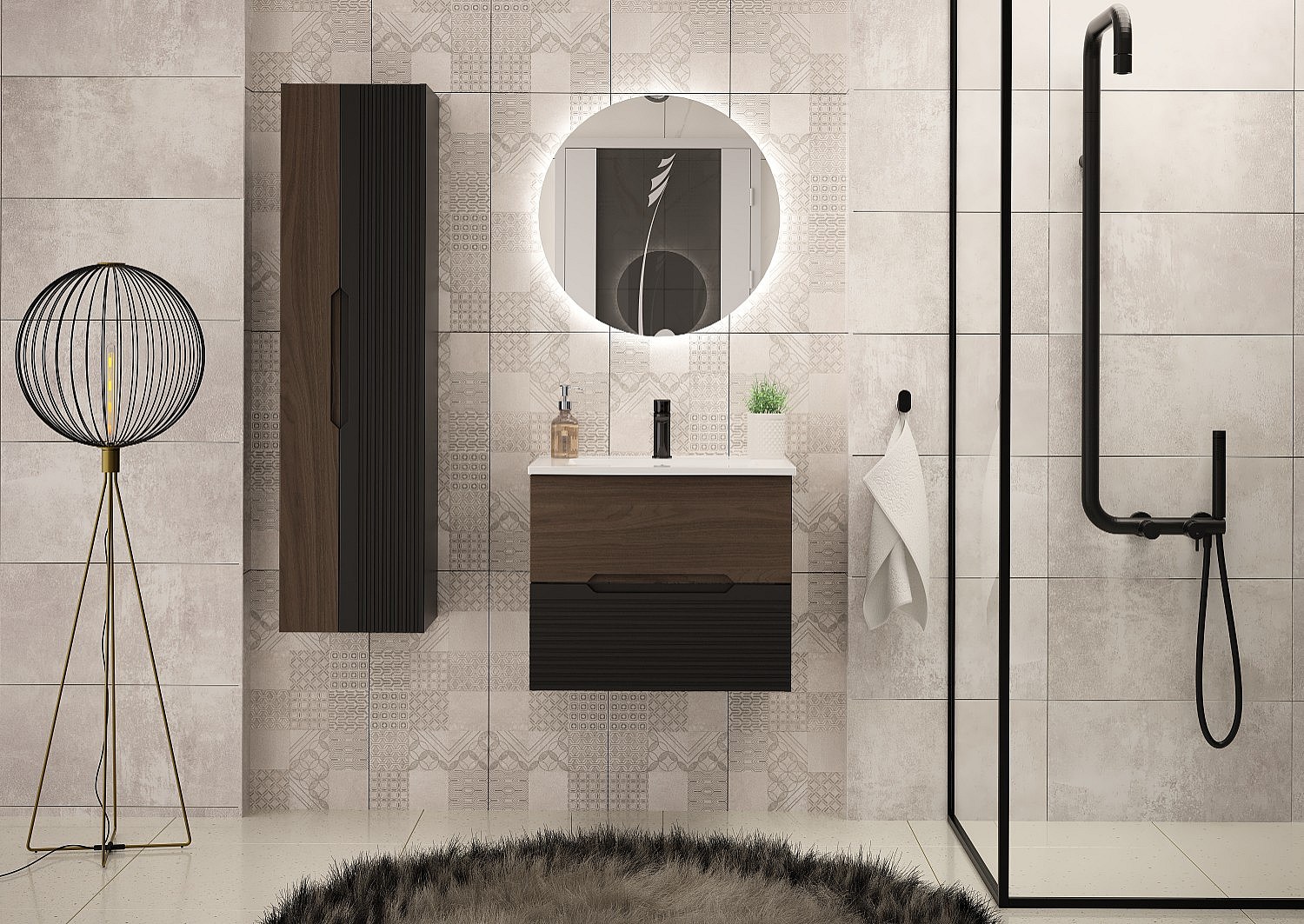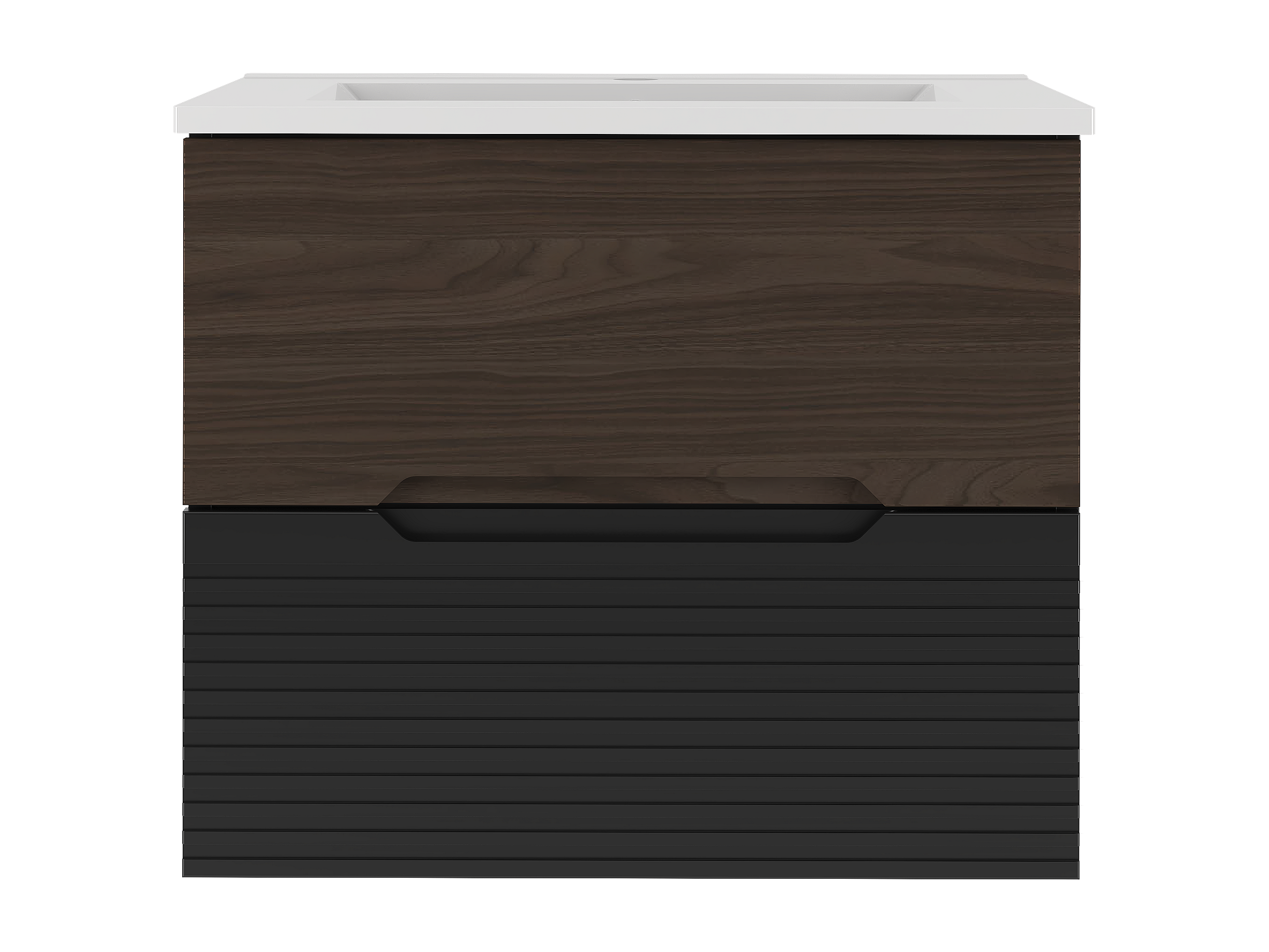 Badezimmer-Set 60 cm Schrank mit Waschbecken Schwarz Matt / Nussbaum Avella