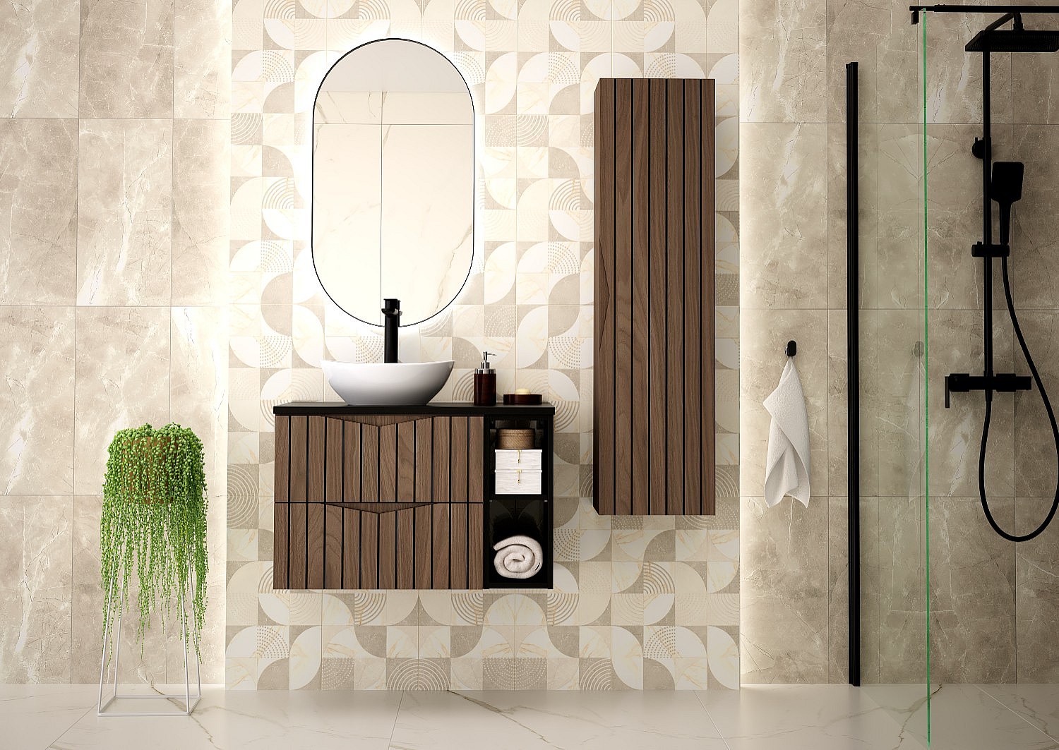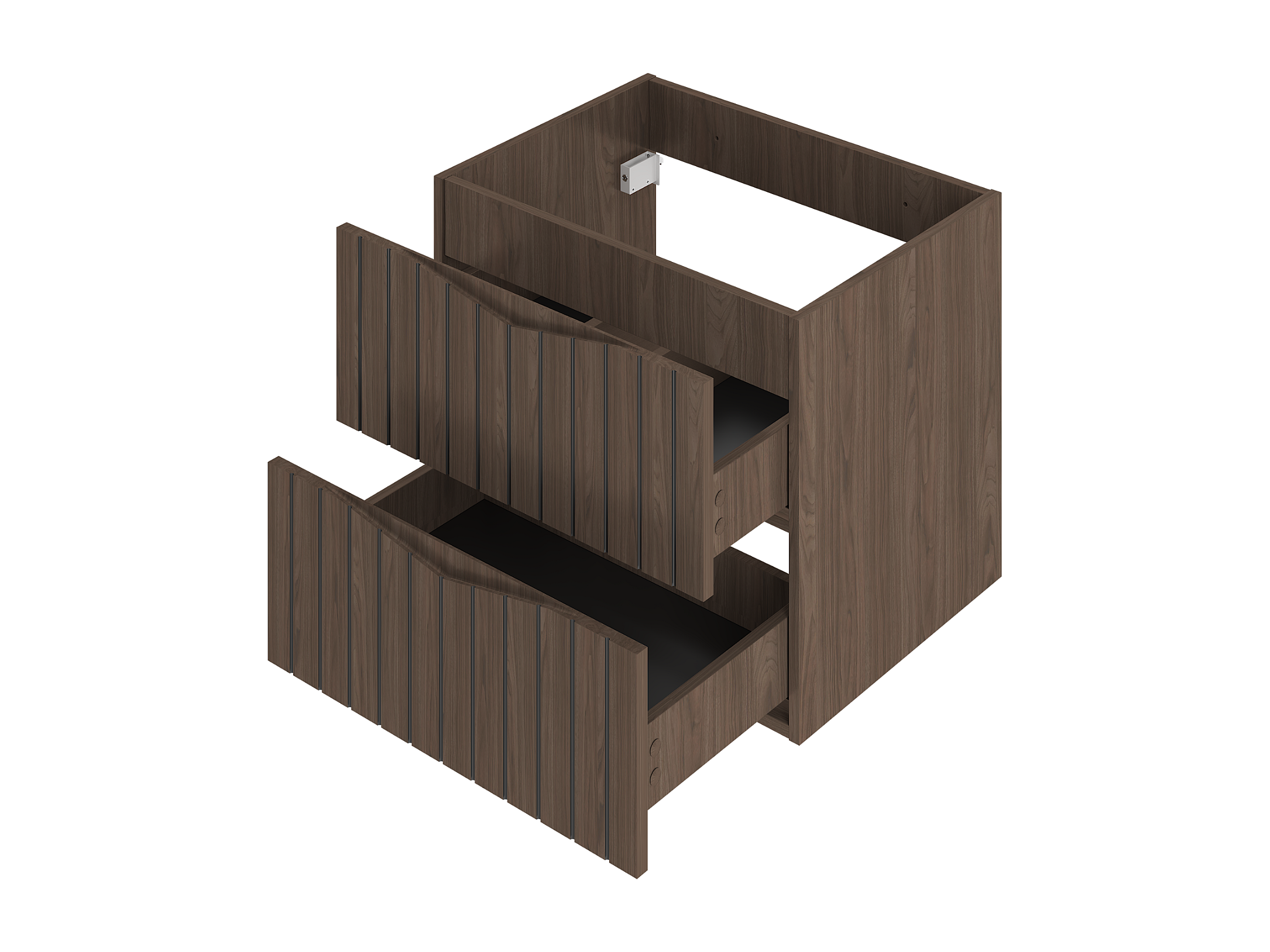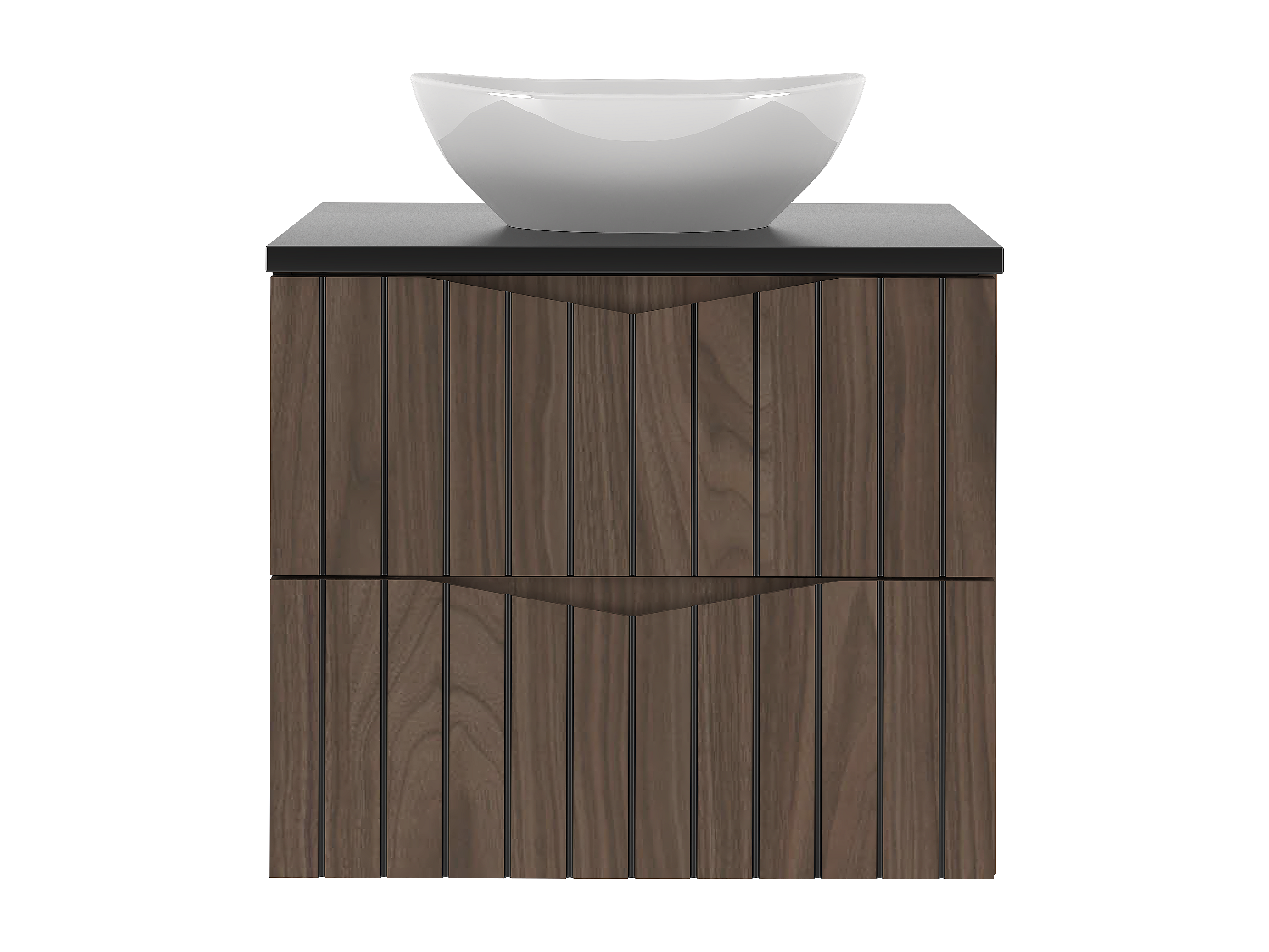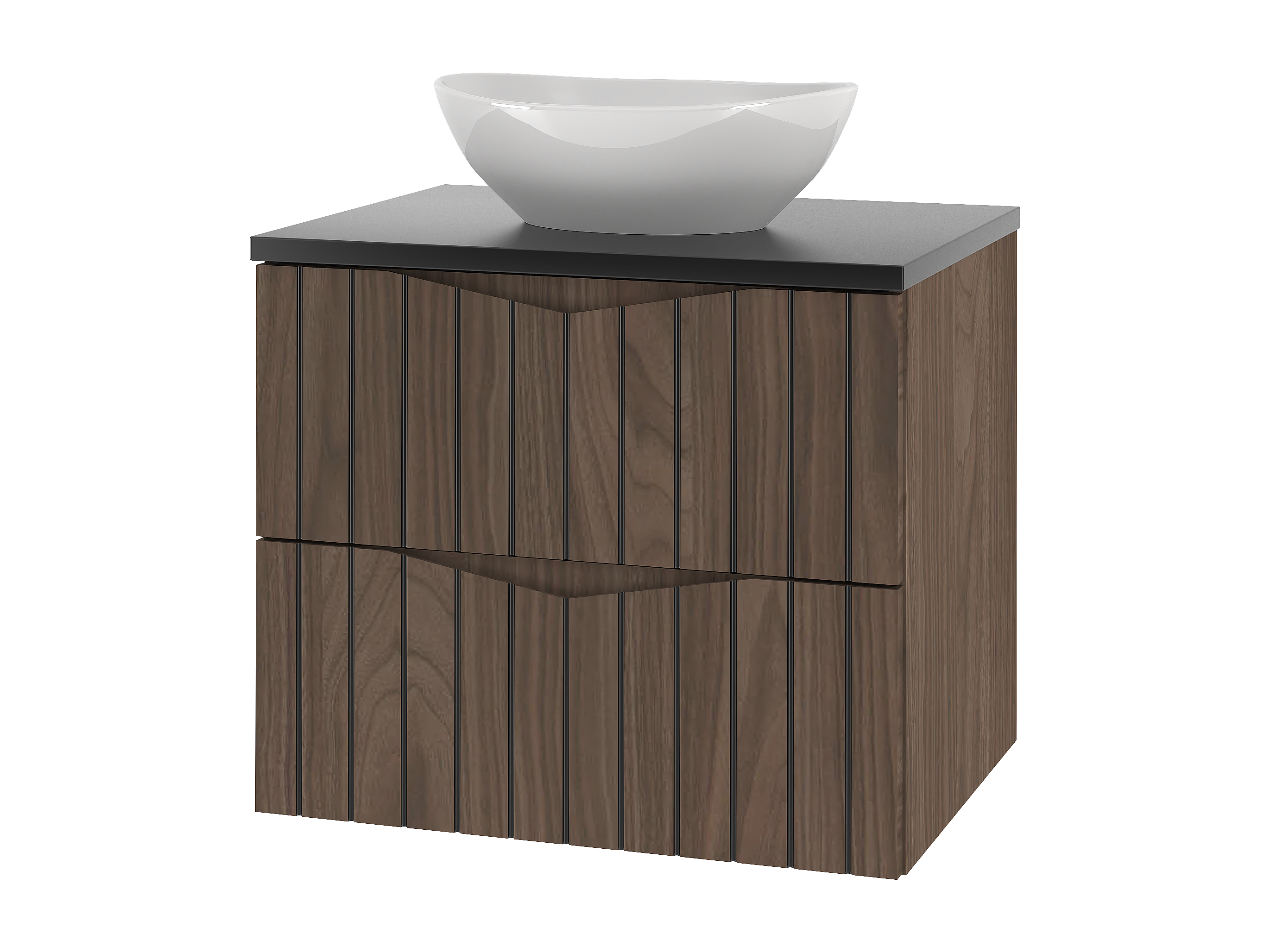 Badezimmer-Set 60 cm Schrank mit Waschtischplatte und Waschbecken Geriffelte Fronten Eiche Nussbaum Stella