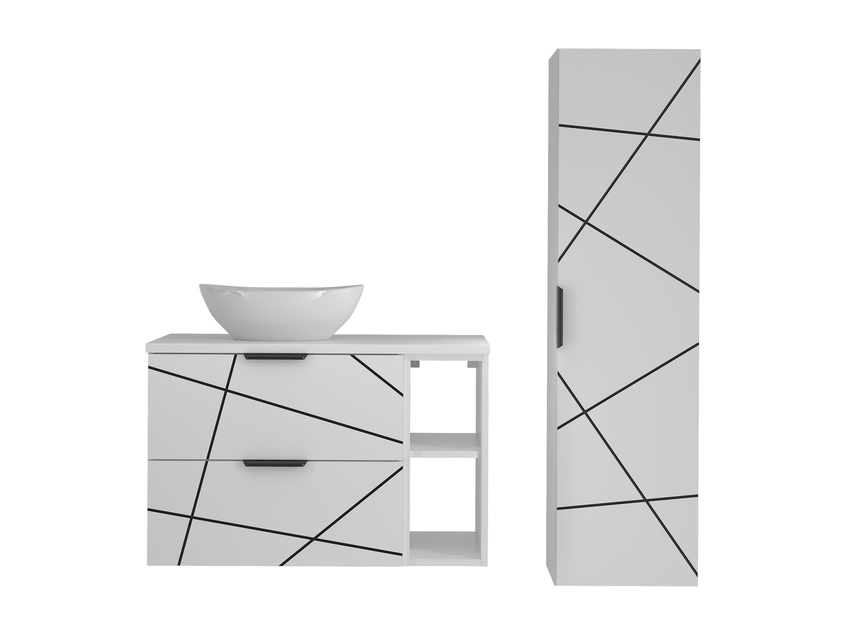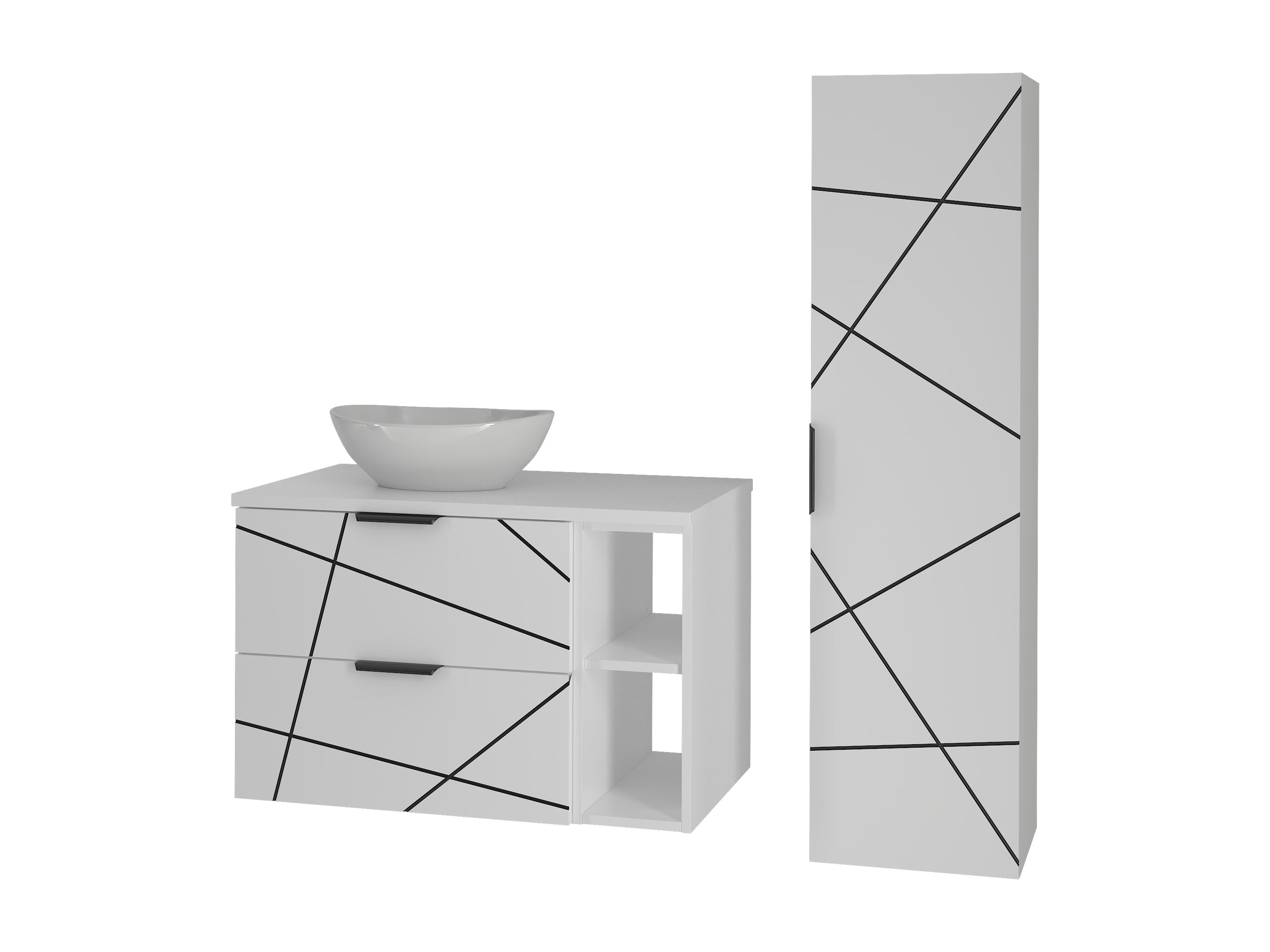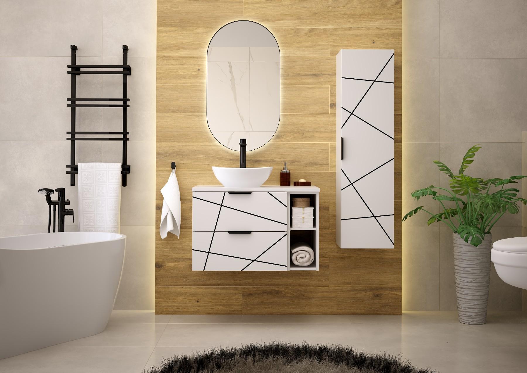 Badezimmer-Set 80 cm Schrank mit Arbeitsplatte und Regal und Waschbecken und Hochschrank Weiß Matt Wood