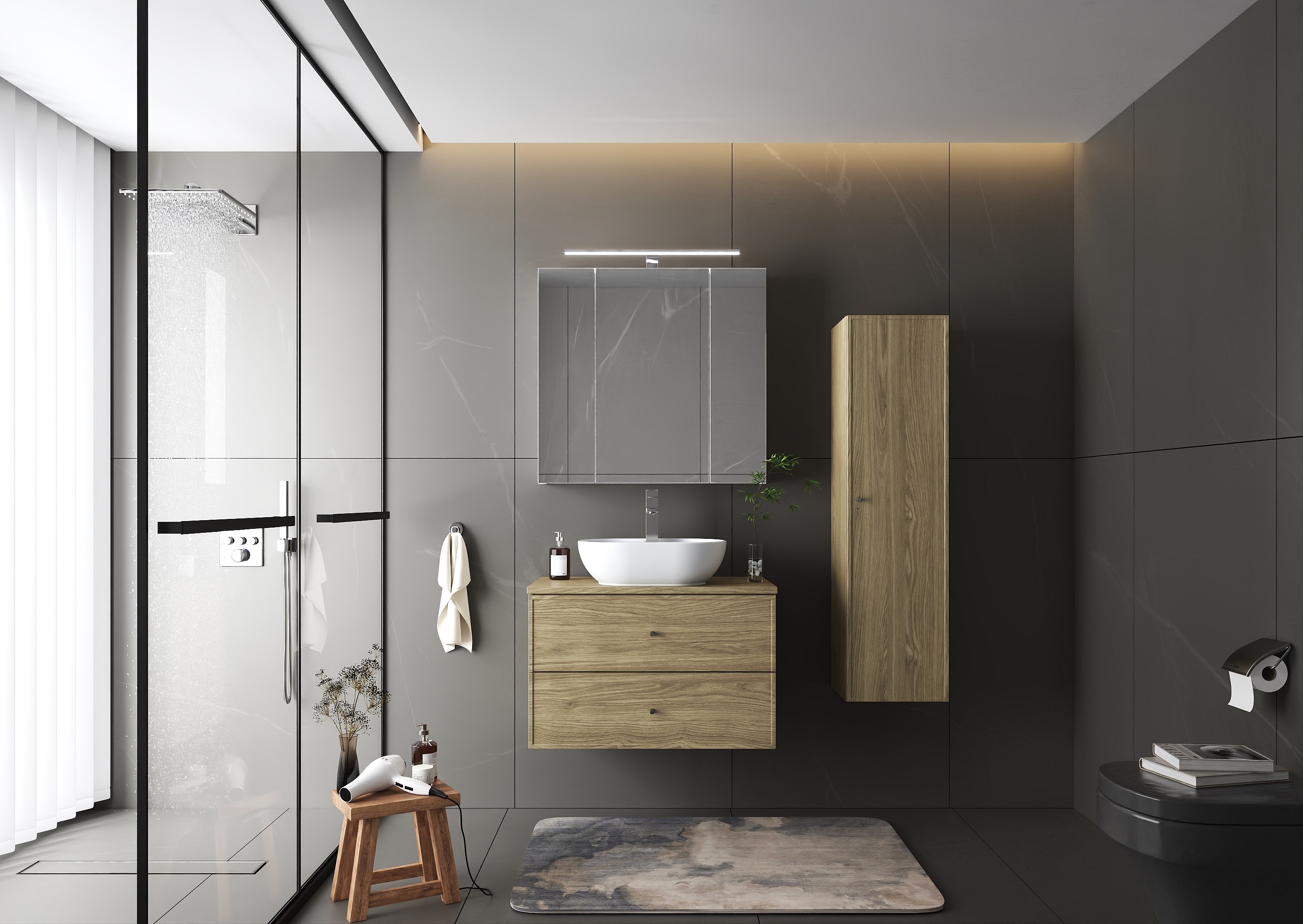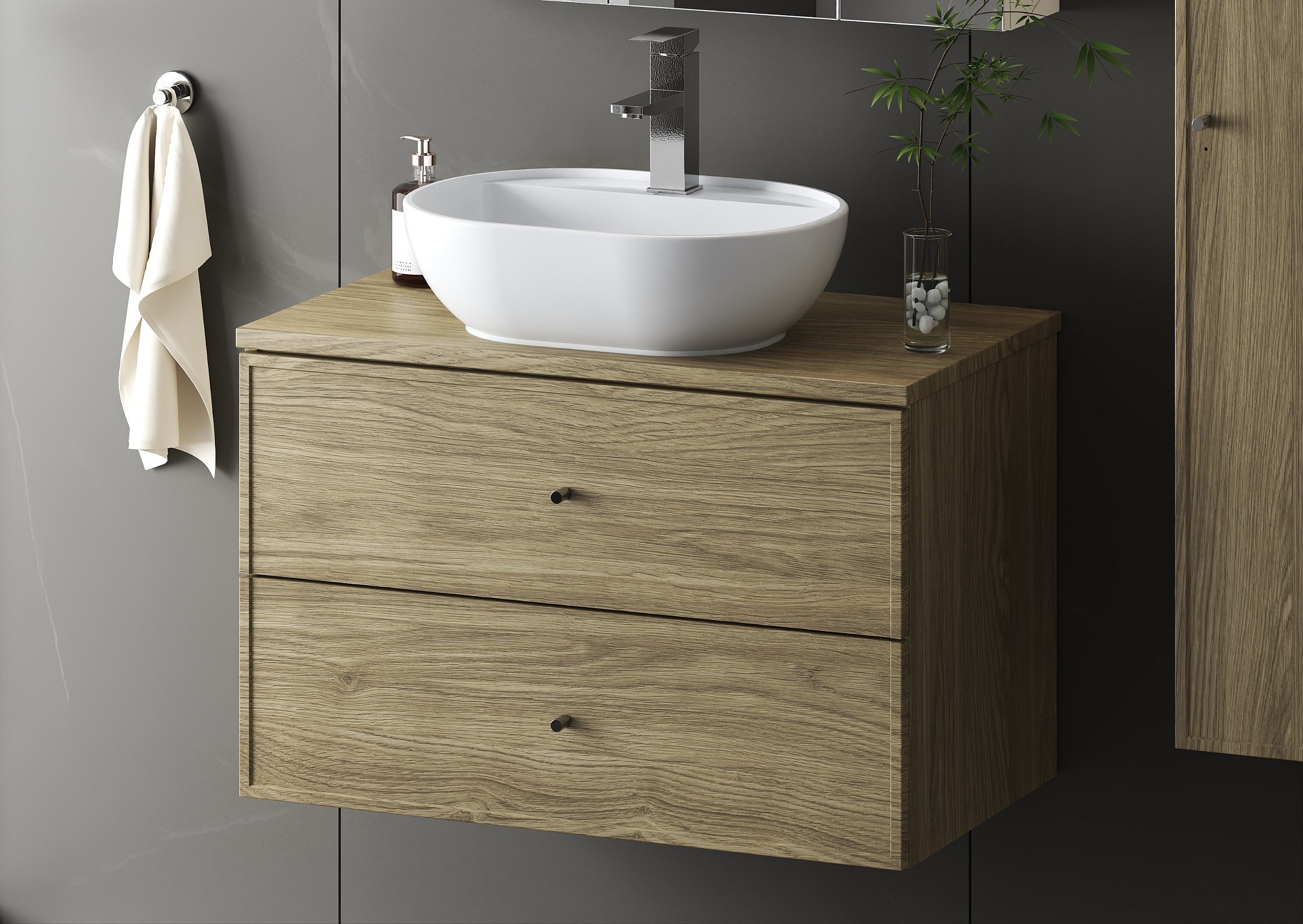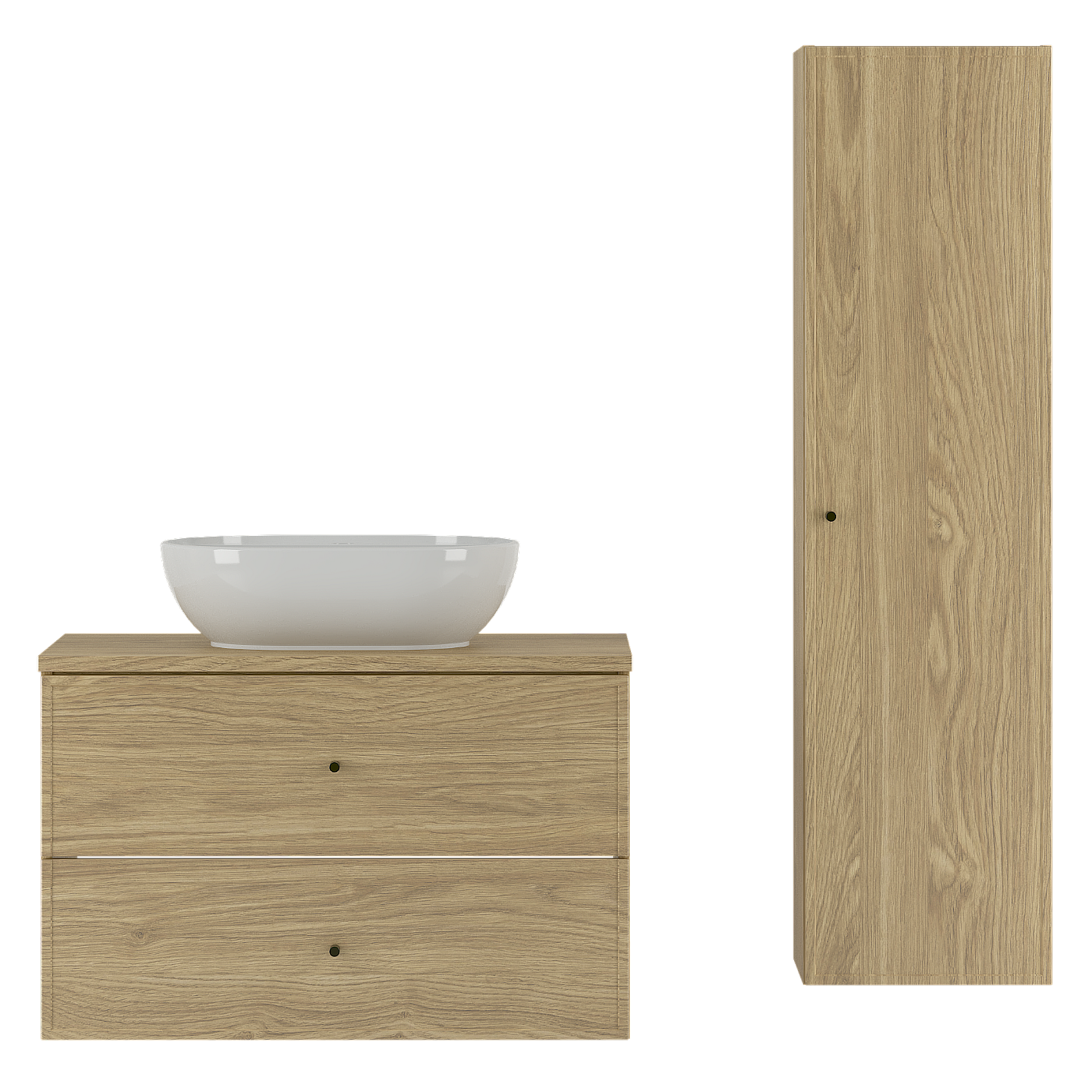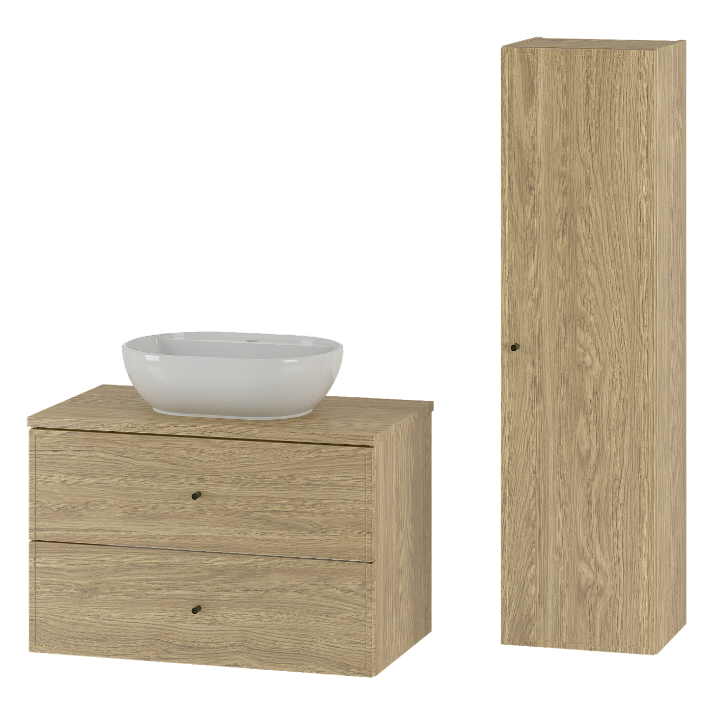 Badezimmer-Set 80 cm Schrank mit Arbeitsplatte und Waschbecken und Hochschrank Eiche geölt Marco