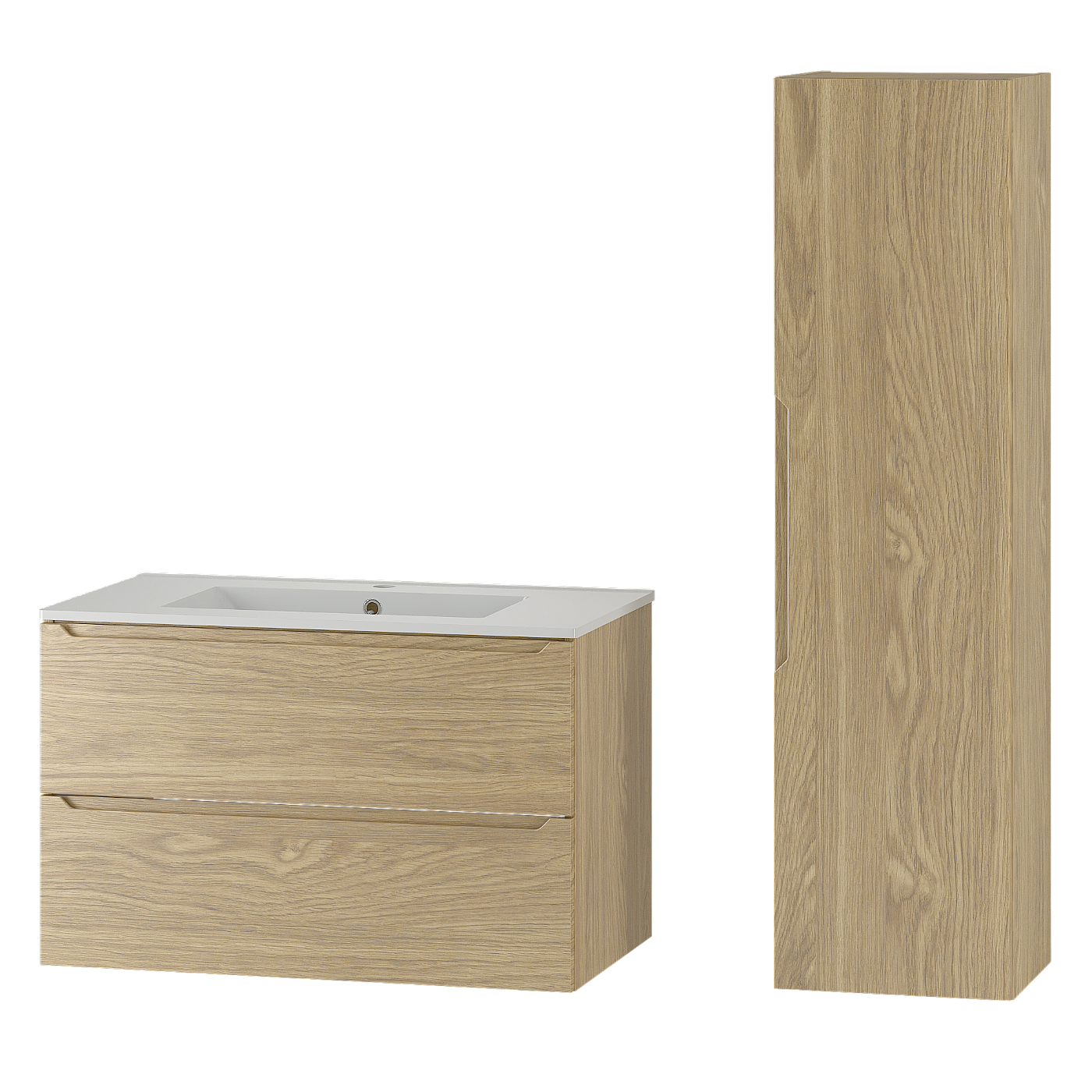 Badezimmer-Set 80 cm Schrank mit Waschbecken und Hochschrank Eiche geölt Etna