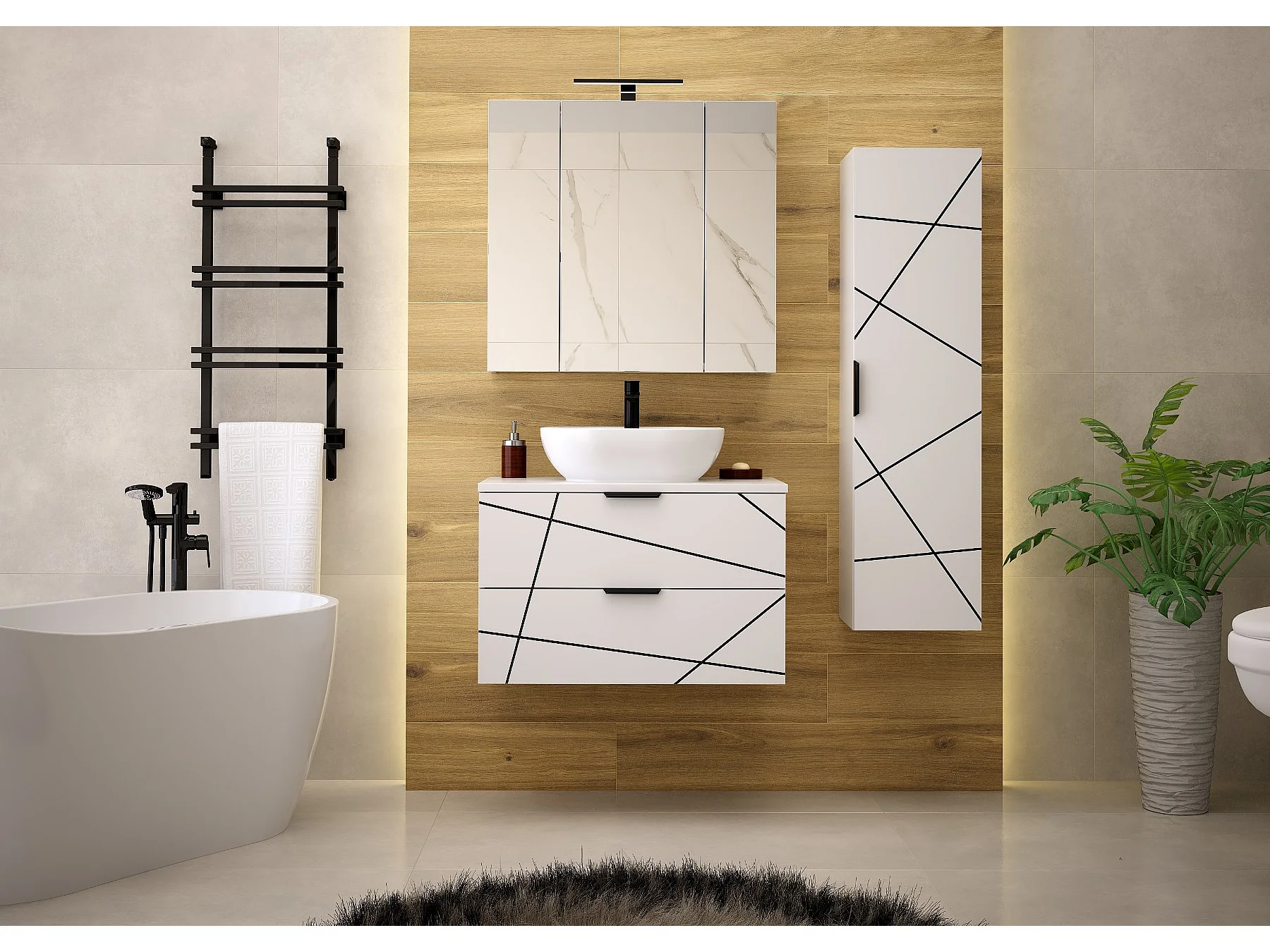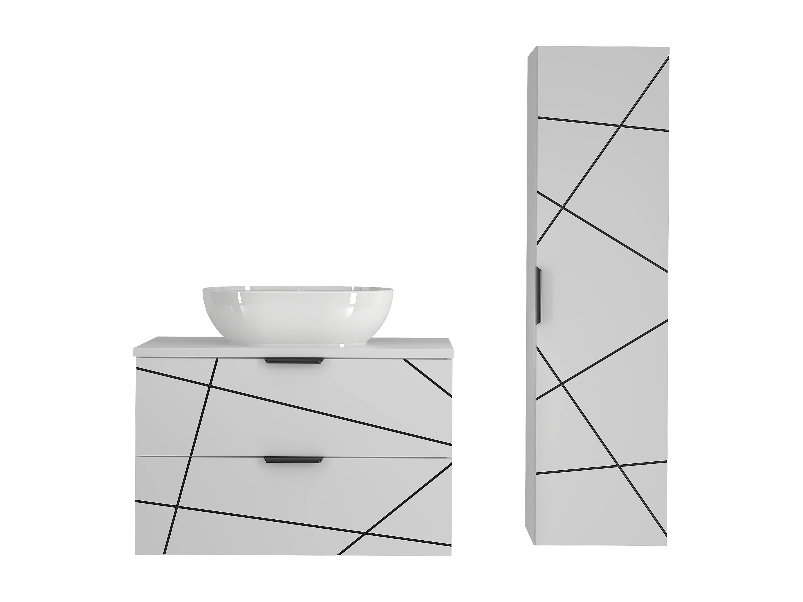 Badezimmer-Set 80 cm Schrank mit Waschtisch und Waschbecken und Hochschrank Weiß Matt Wood