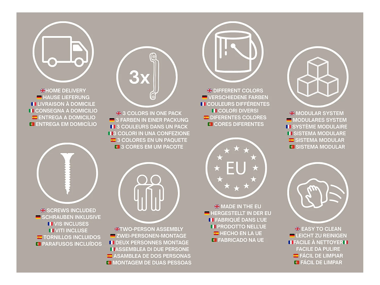 Badezimmer-Set: Schrank mit Schubladen, Schrank mit Türen und Regal 57×46×140 cm, Farbe: Eiche Craft / Cashmere, schwarzer Griff