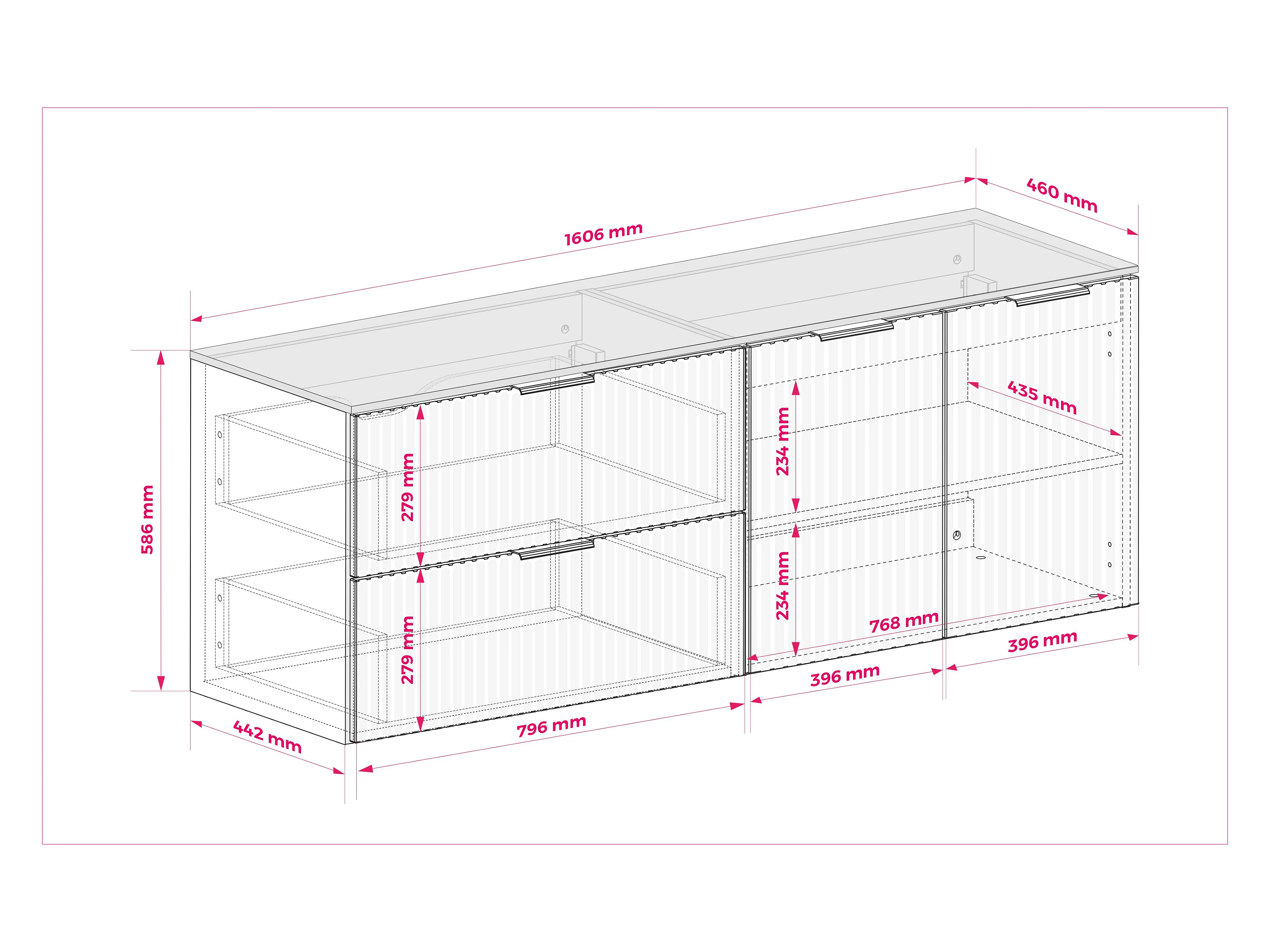 Badezimmer-Set: Schrank mit Schubladen und Schrank mit Türen 57×46×160 cm, Farbe: Weiß / Eiche Craft, schwarzer Griff