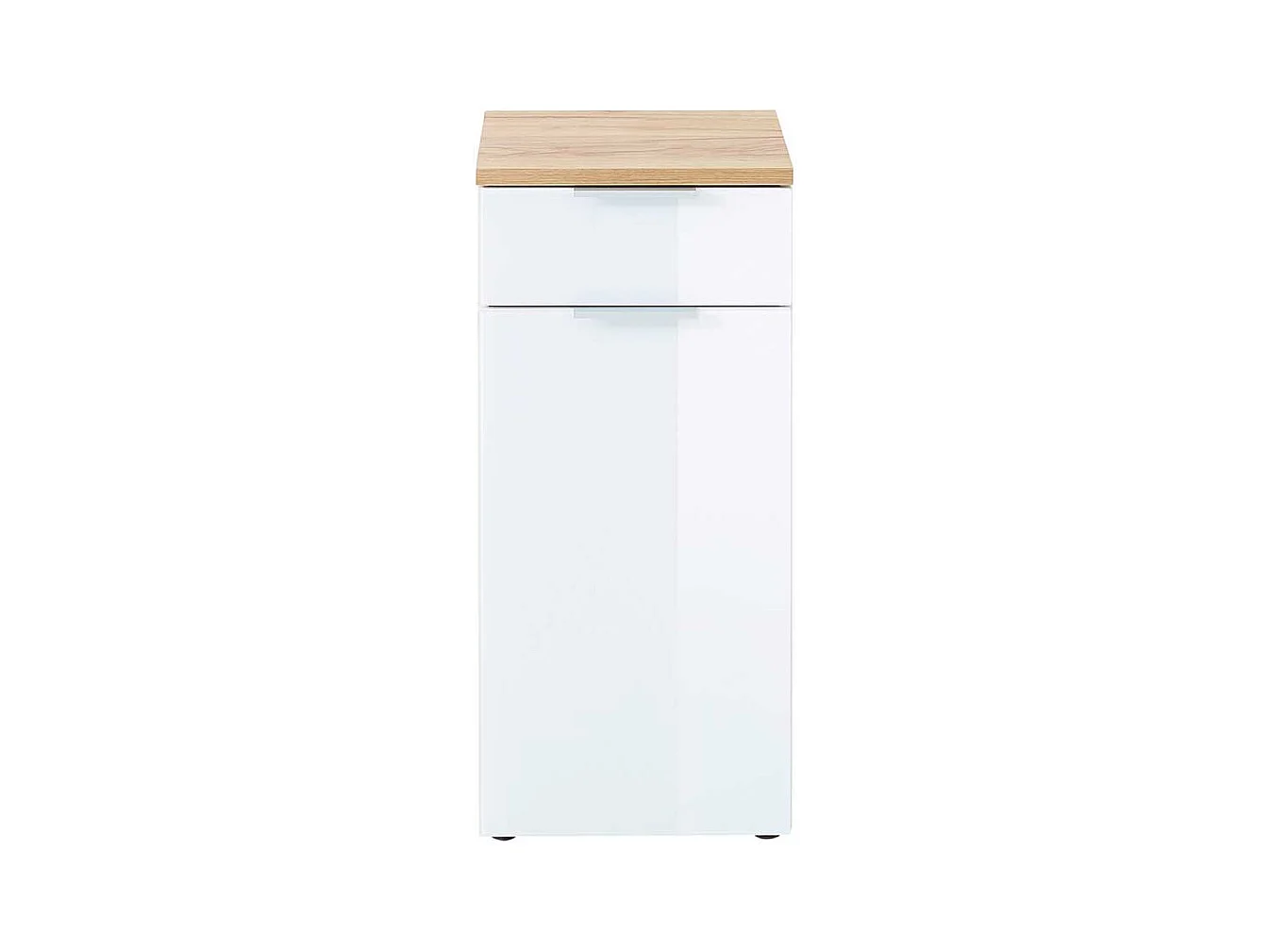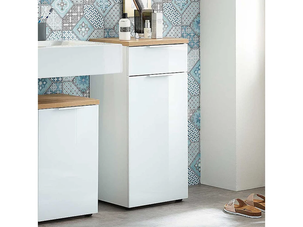 Badezimmer Unterschrank in Weiß Glas beschichtet Eichefarben