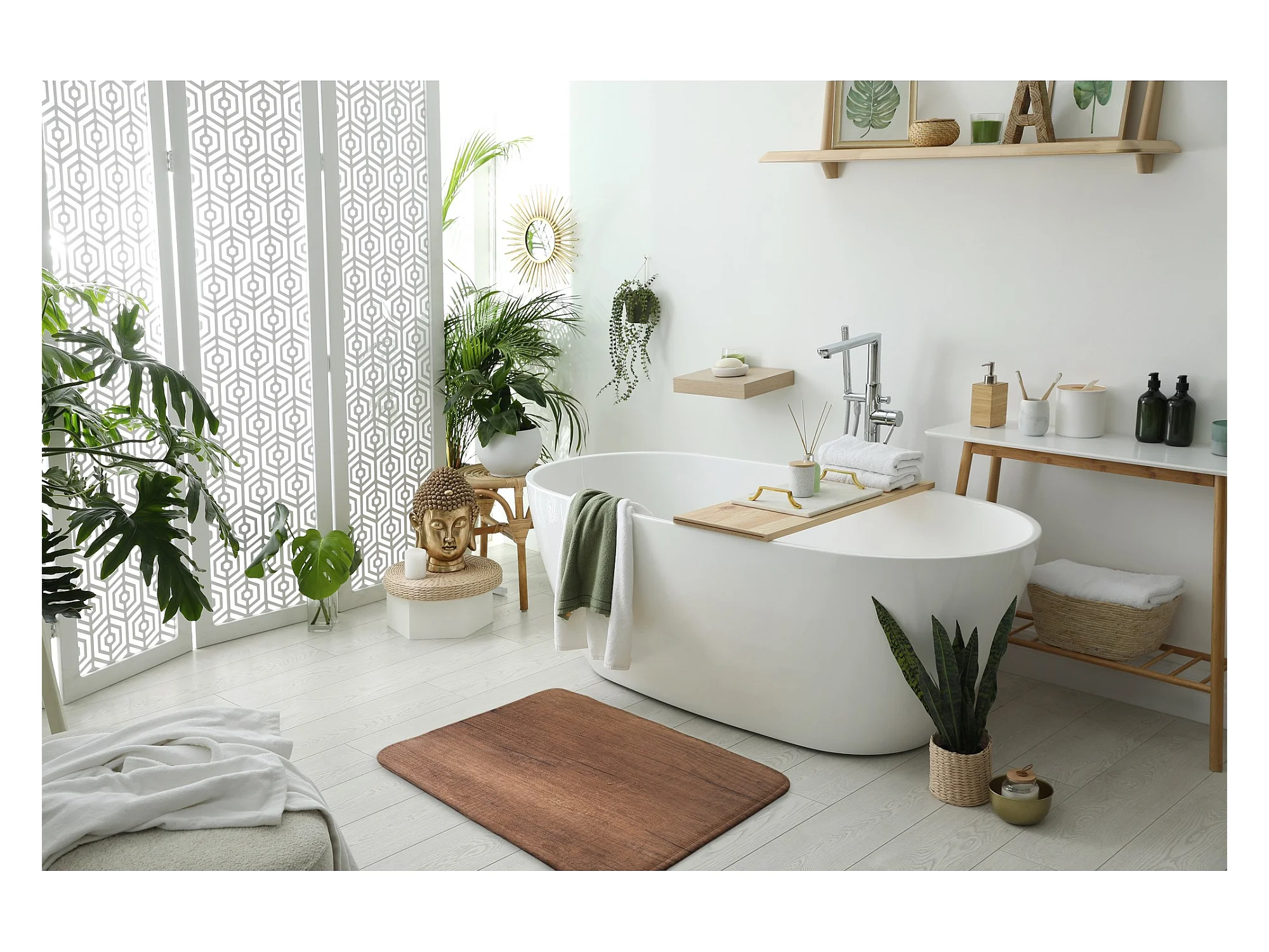 Badezimmermatte 90x60 cm - Rutschfeste Badezimmermatte. Naturholzplatte