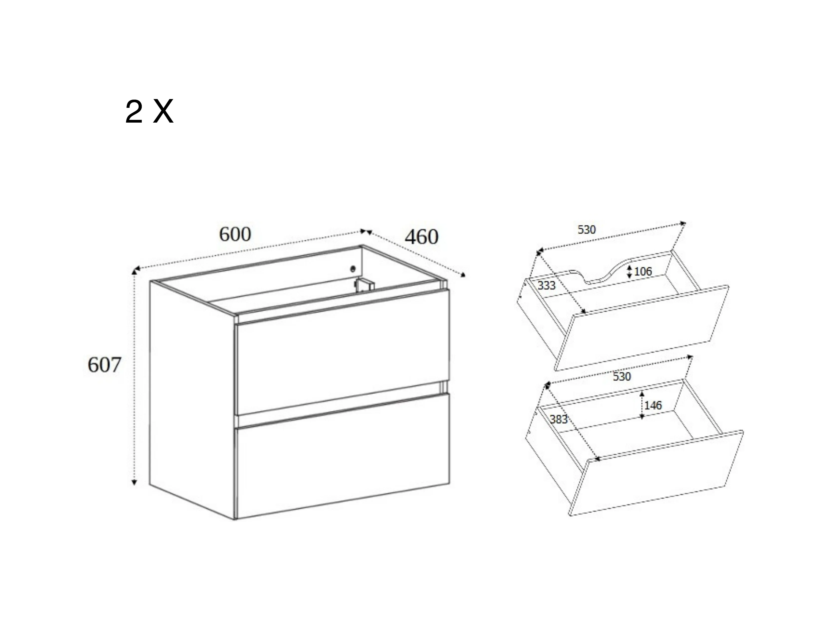 Badezimmermöbel 120 cm (2 x 60) mit Arbeitsplatte, Farbe: Dunkle Eiche, 120 x 57 x 46 cm