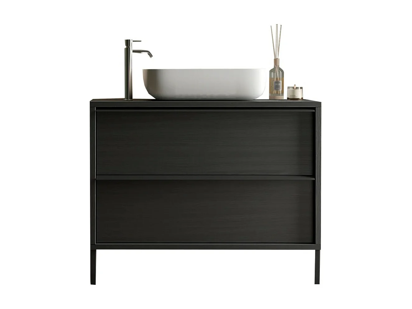 Badezimmermöbel mit Waschbecken und 2 Schubladen, Kollektion FRASSI. Farbe Ascheschwarz.