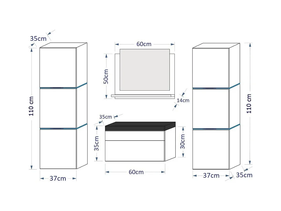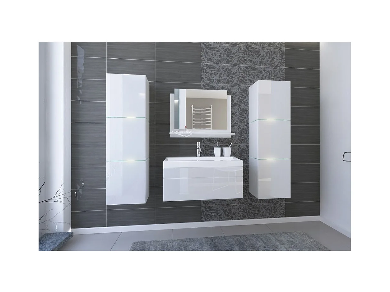 Badezimmermöbel-Set in Weiß, Kollektion OWL. 2 Säulen, Unterschrank, Waschbecken