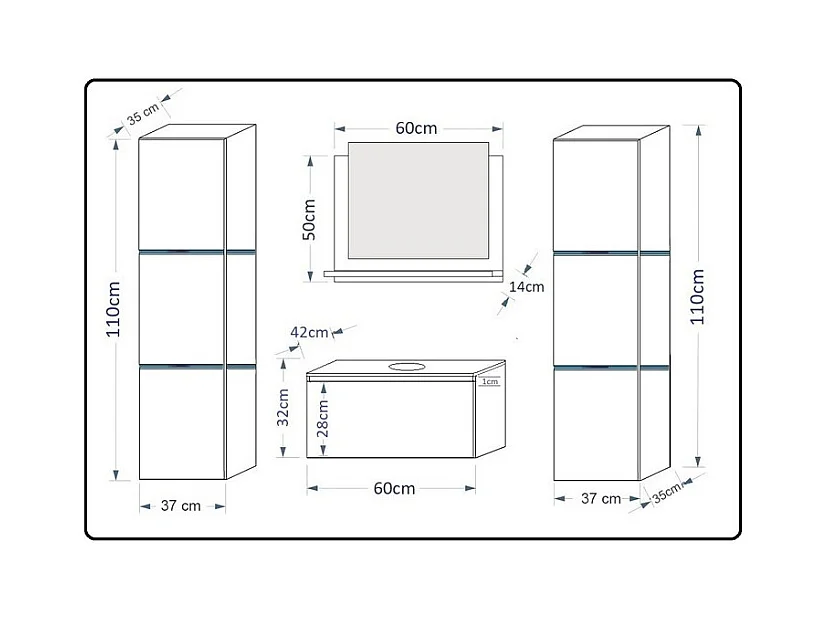 Badezimmermöbelset in Weiß, Kollektion OWL. 2 Säulen 37x110x35, Waschtischunterschrank