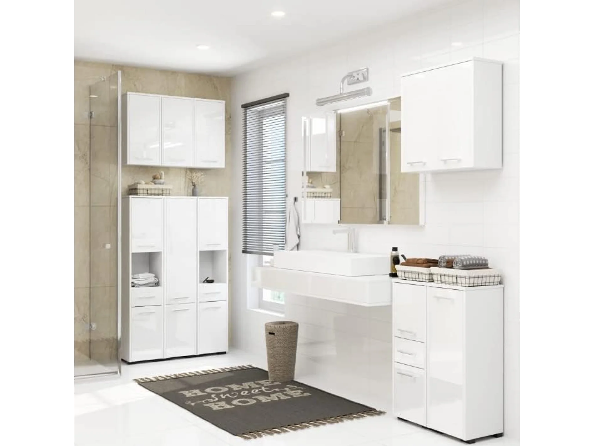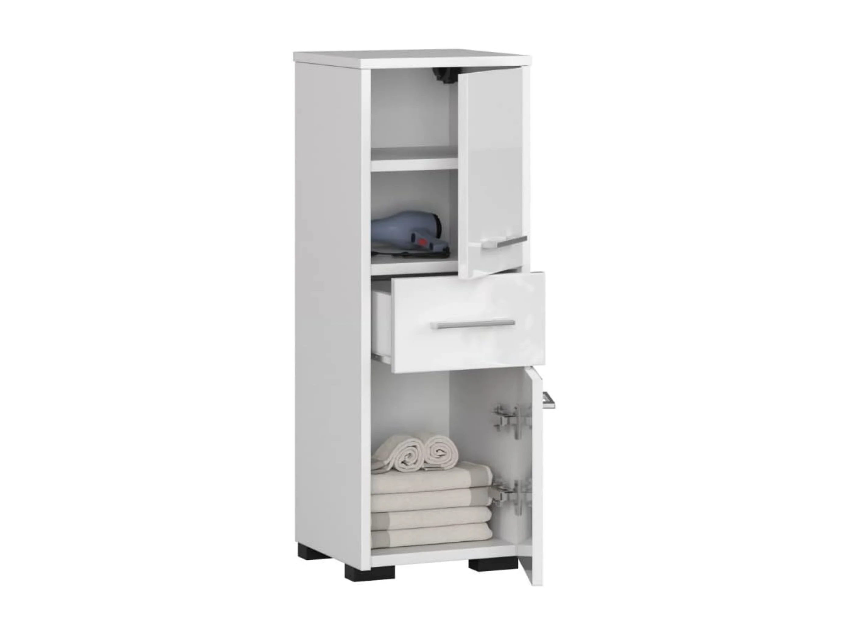 Badezimmersäule, 2 Türen, 1 Schublade, 140 x 30 x 30 cm, mattweiß, glänzend weiß