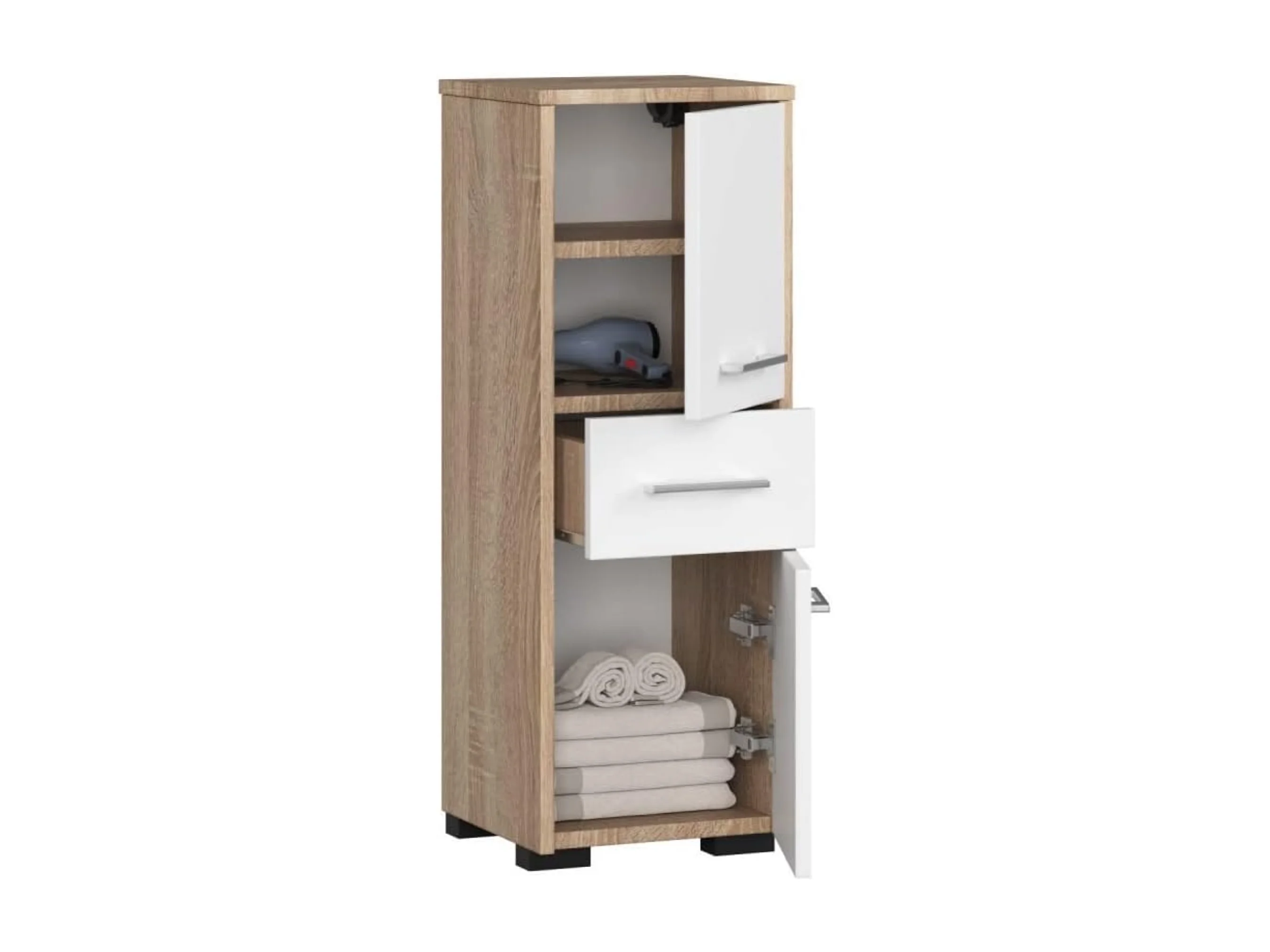 Badezimmersäule, 2 Türen, 1 Schublade, 140 x 30 x 30 cm, Sonoma-Eiche, mattweiß
