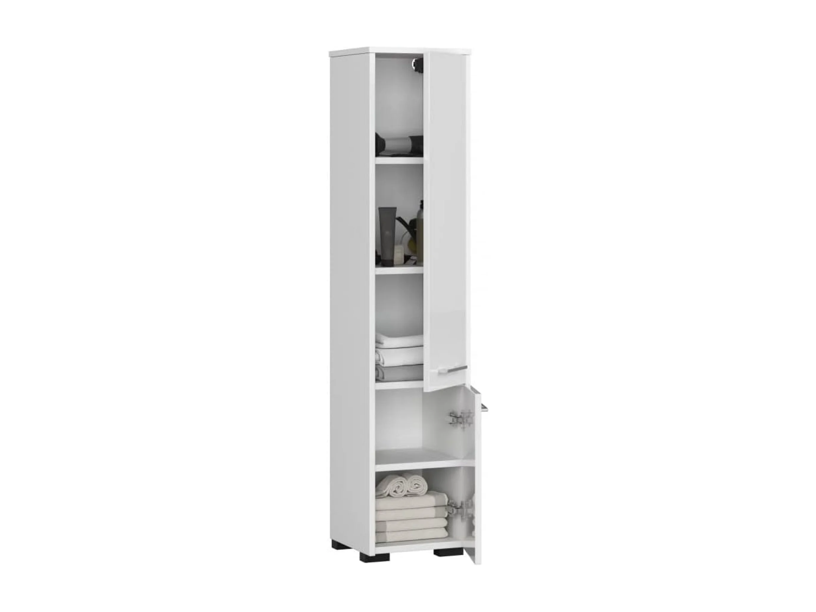 Badezimmersäule, 2 Türen, 140 x 30 x 30 cm, mattweiß, glänzend weiß