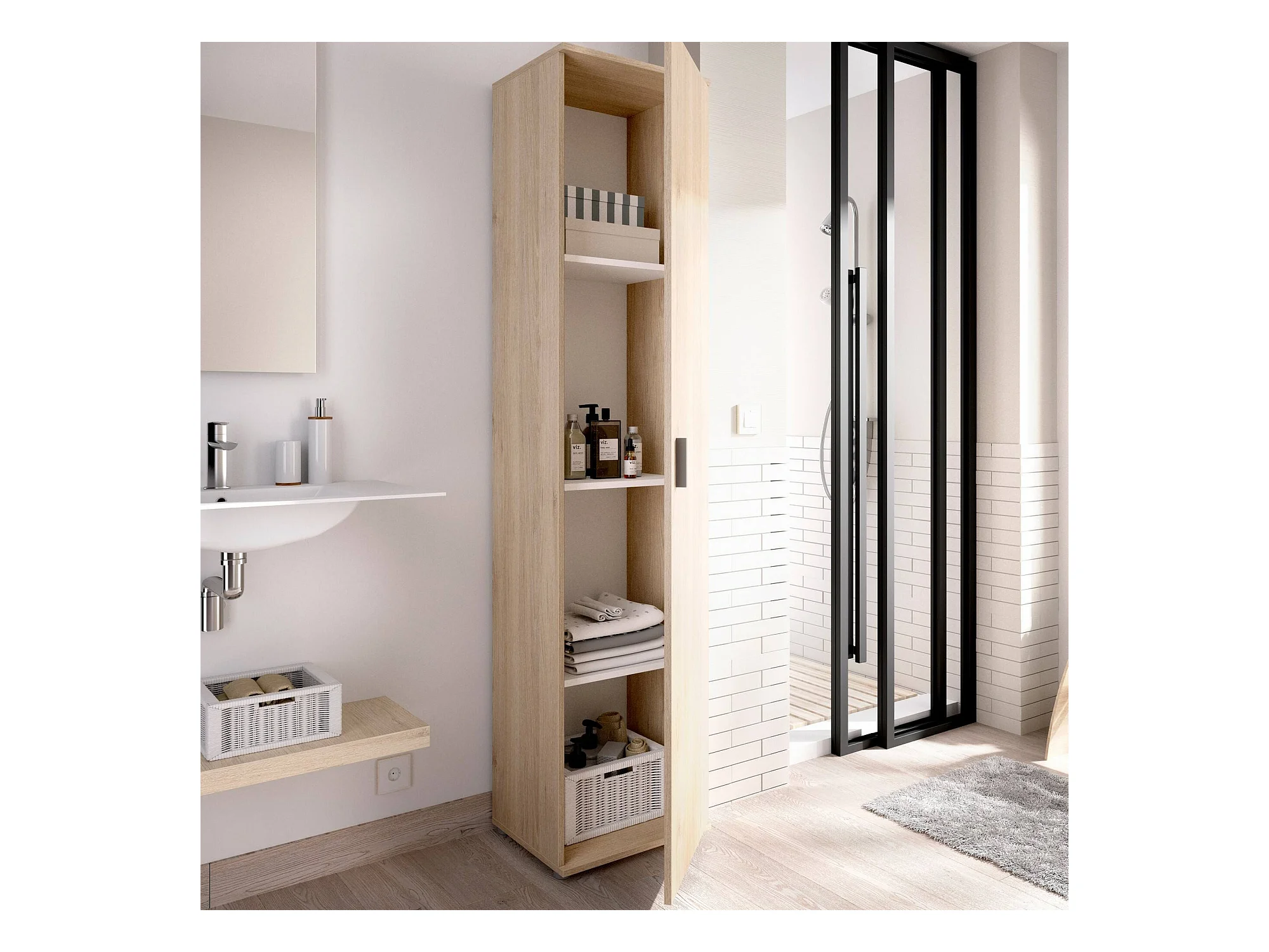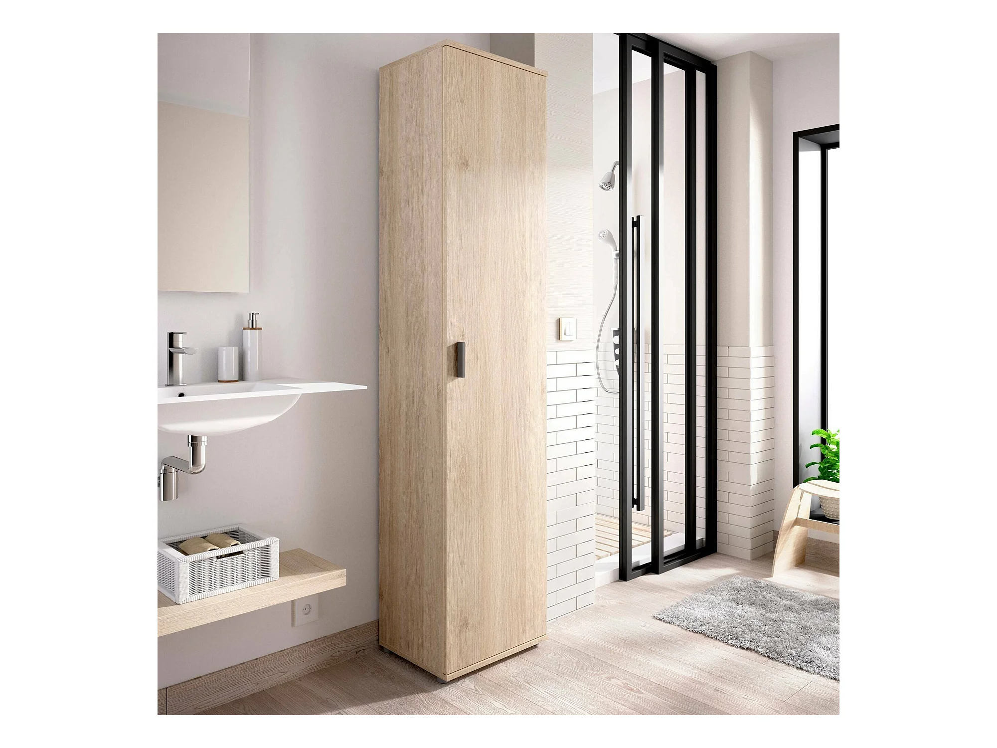 Mehrzweckschrank Dfuzat, Multifunktionales Aufbewahrungselement, 1-türiger Kleiderschrank, 39x35h190 cm, Eiche