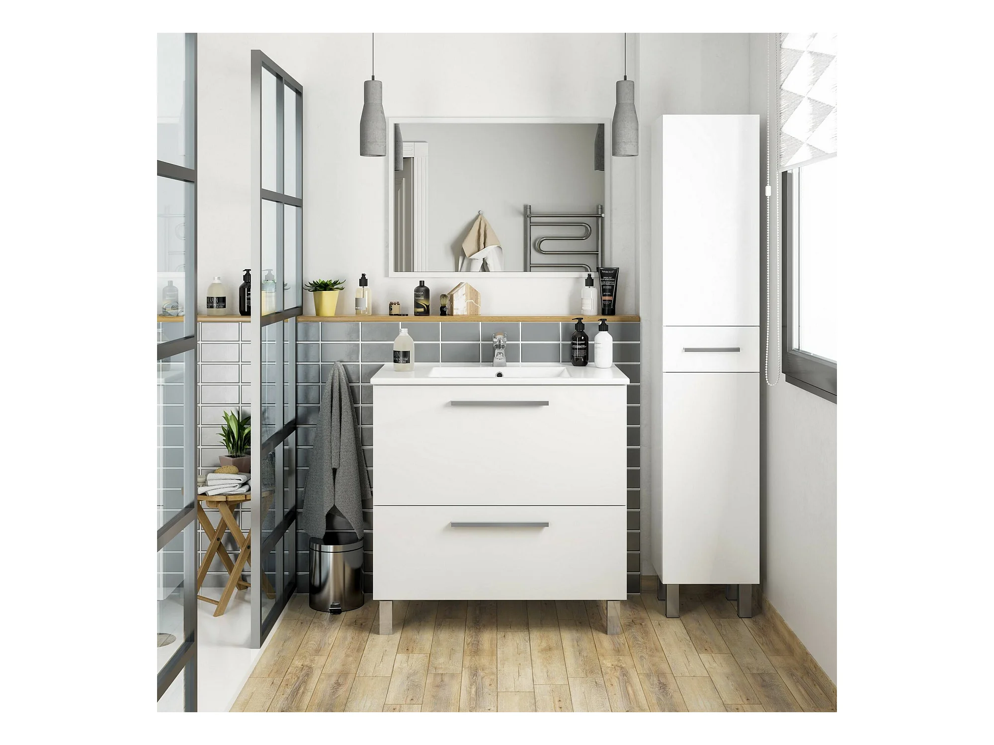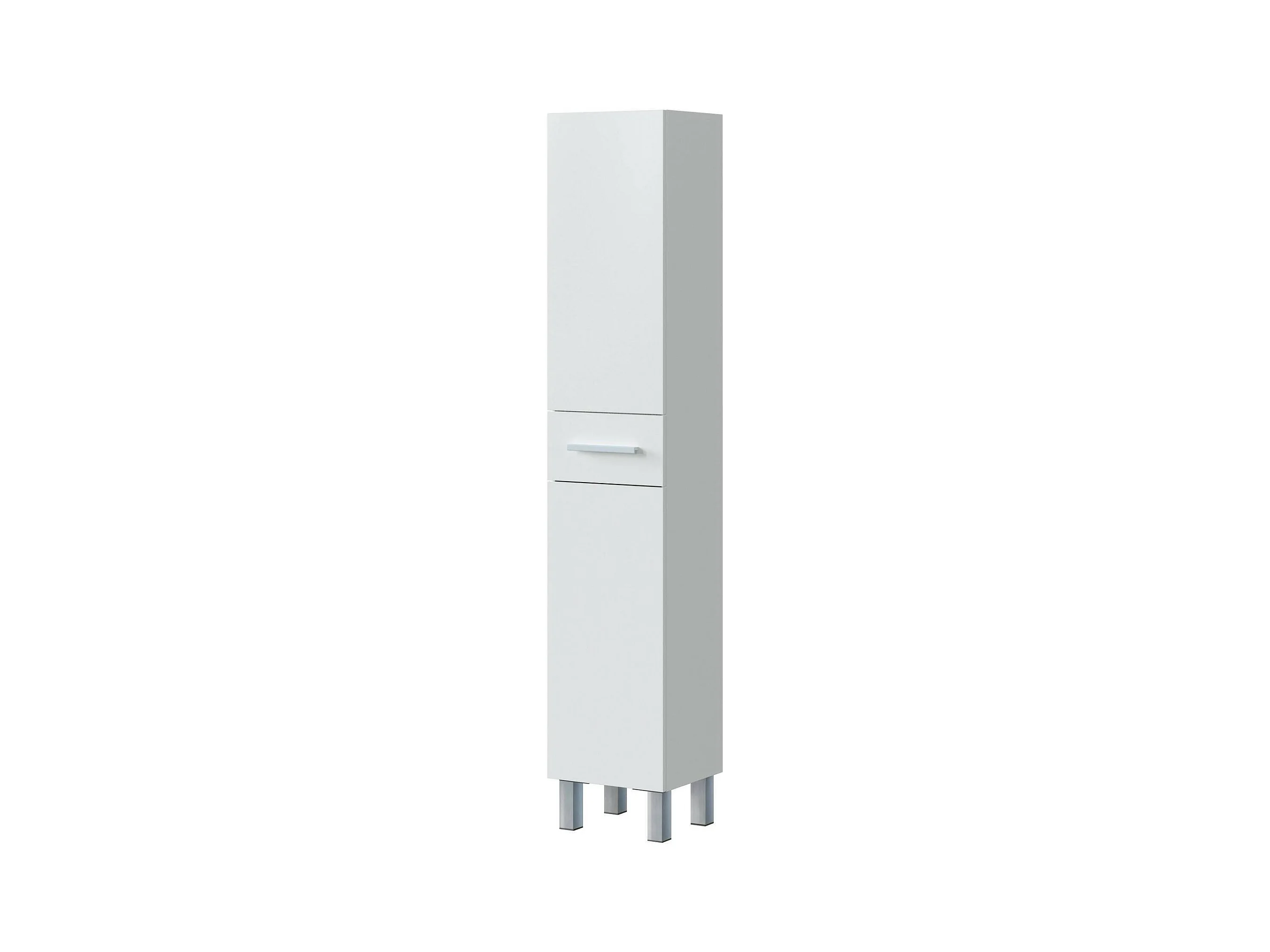 Badezimmersäule Wilmington, Badezimmerwandschrank mit 2 Türen und 1 Schublade, Hochschrank, 35x31h182 cm, Glänzendes Weiß
