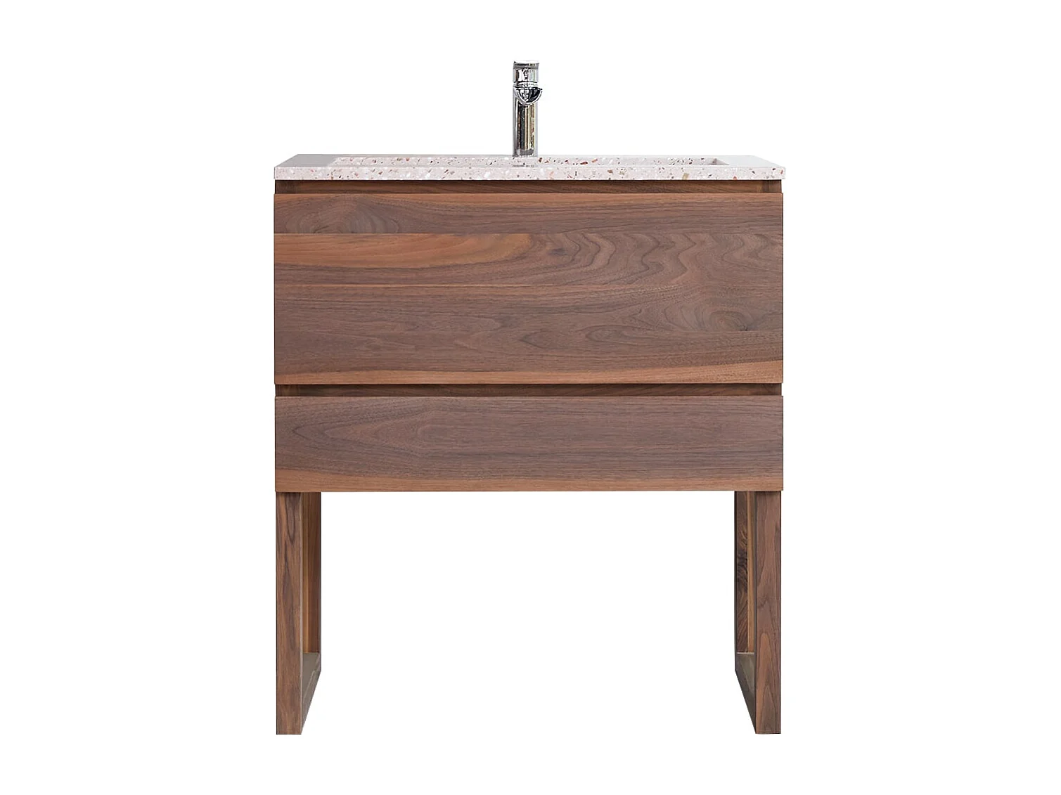 Badezimmerschrank aus Nussbaum massiv und rosa Premium-Terrazzo Edgar 80
